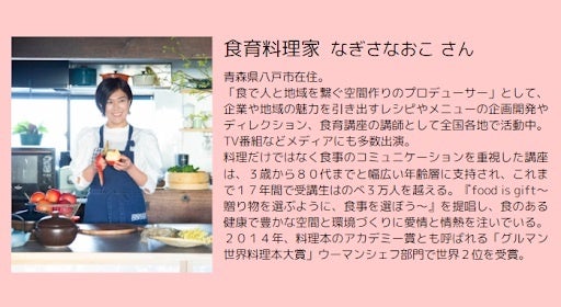 青森県八戸市在住。「食で人と地域を繋ぐ空間作りのプロデューサー」として、企業や地域の魅力を引き出すレシピやメニューの企画開発やディレクション、食育講座の講師として全国各地で活動中。TV番組などメディアにも多数出演。料理だけではなく食事のコミュニケーションを重視した講座は、3歳から80代までと幅広い年齢層に支持され、これまで17年間で受講生はのべ3万人を越える。『food is gift〜贈り物を選ぶように、食事を選ぼう〜』を提唱し、食のある健康で豊かな空間と環境づくりに愛情と情熱を注いでいる。2014年、料理本のアカデミー賞とも呼ばれる「グルマン世界料理本大賞」ウーマンシェフ部門で世界2位を受賞。