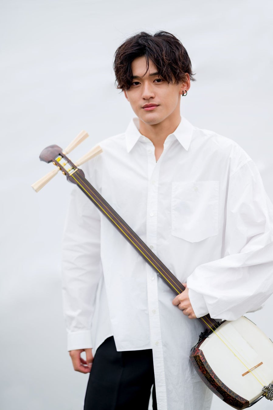弱冠19歳。14歳で津軽三味線全国⼤会個⼈最⾼峰部⾨史上最年少優勝を果たし、天才との呼び声も高い