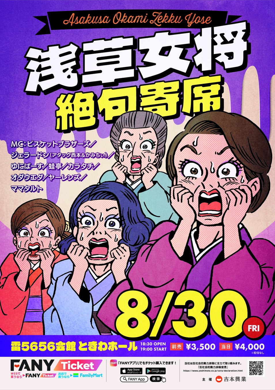 8月29日(木)~9月1日(日)の4日間、浅草・雷5656会館 ときわホールで、夏の終わりを彩るバラエティ豊かなお笑いイベントを9公演、開催いたします。