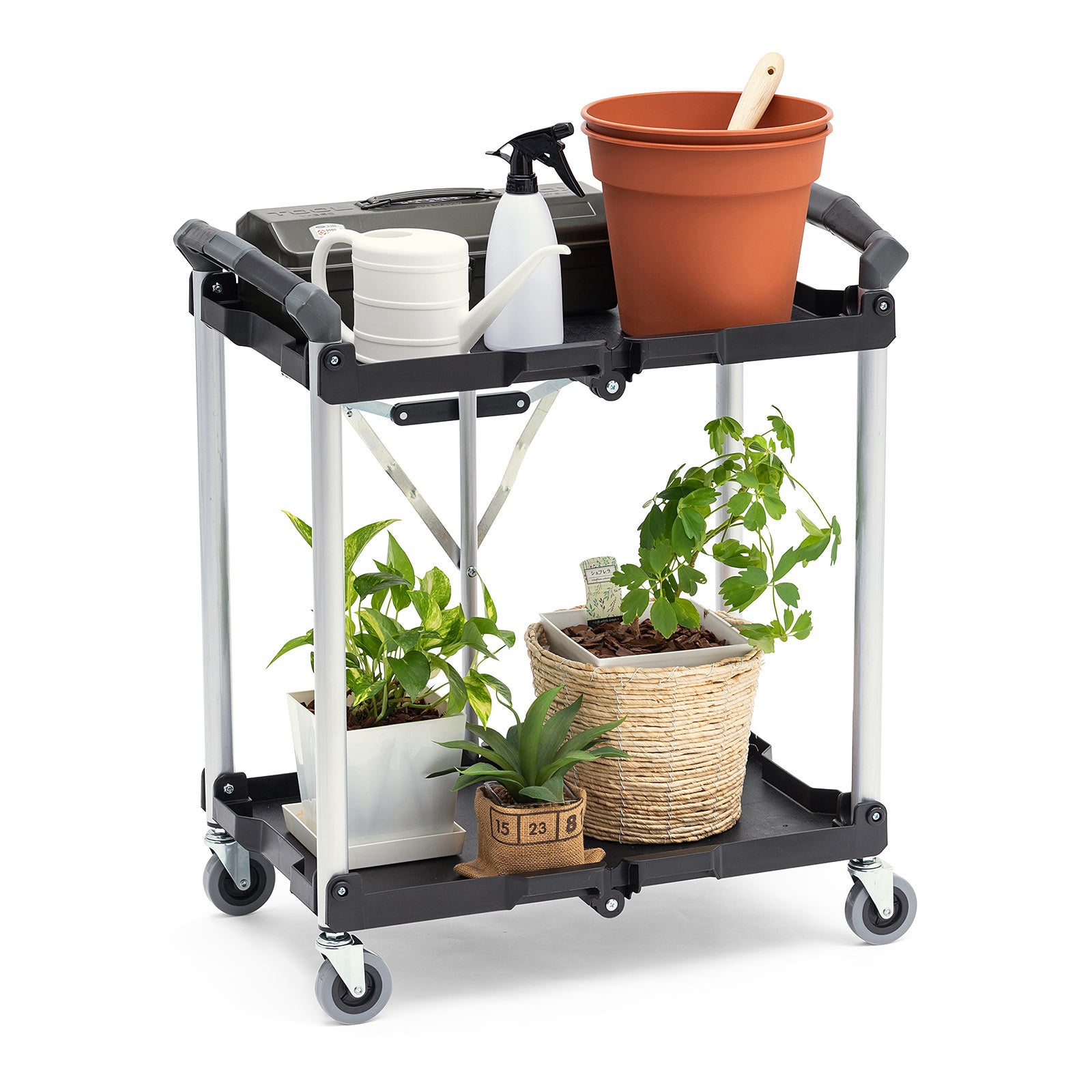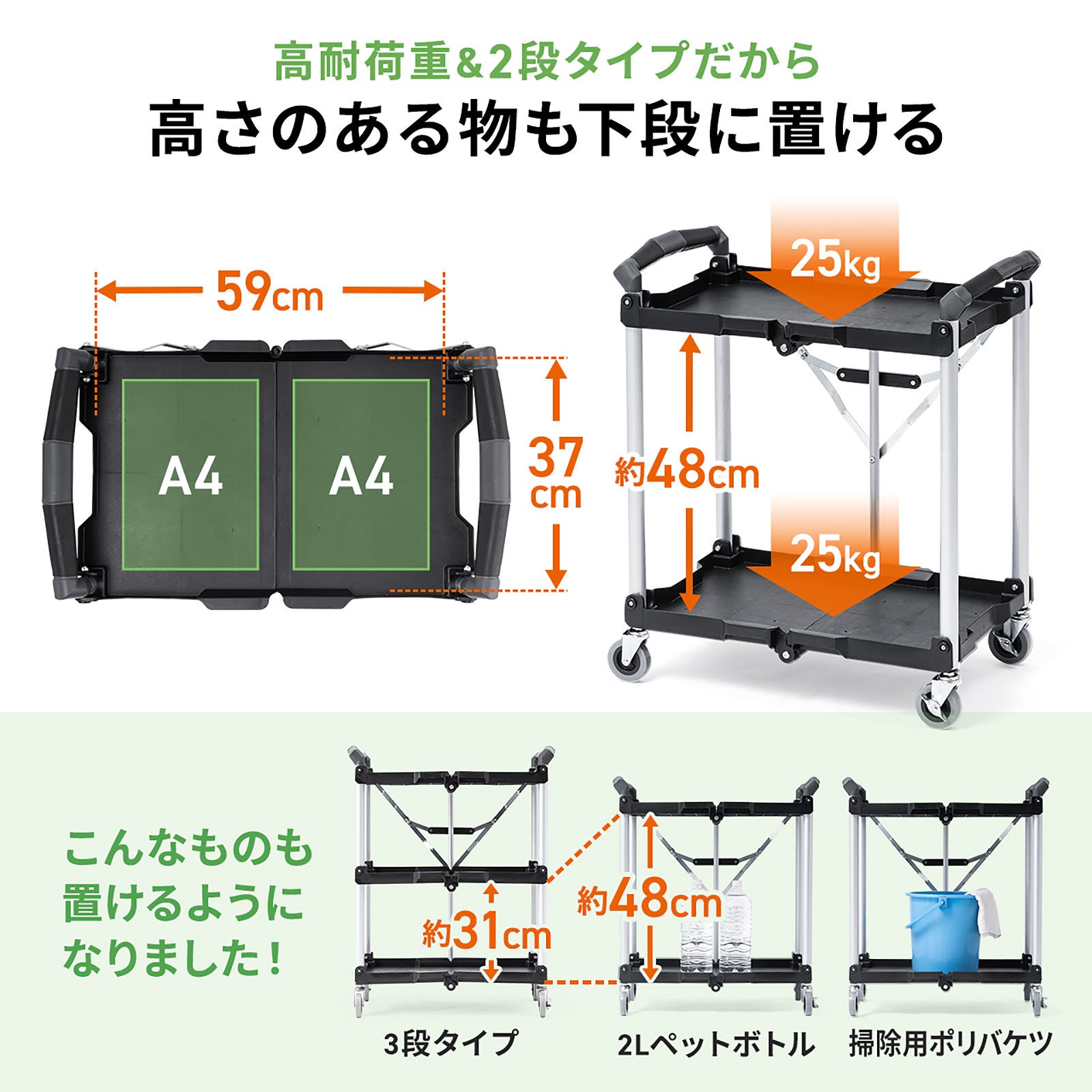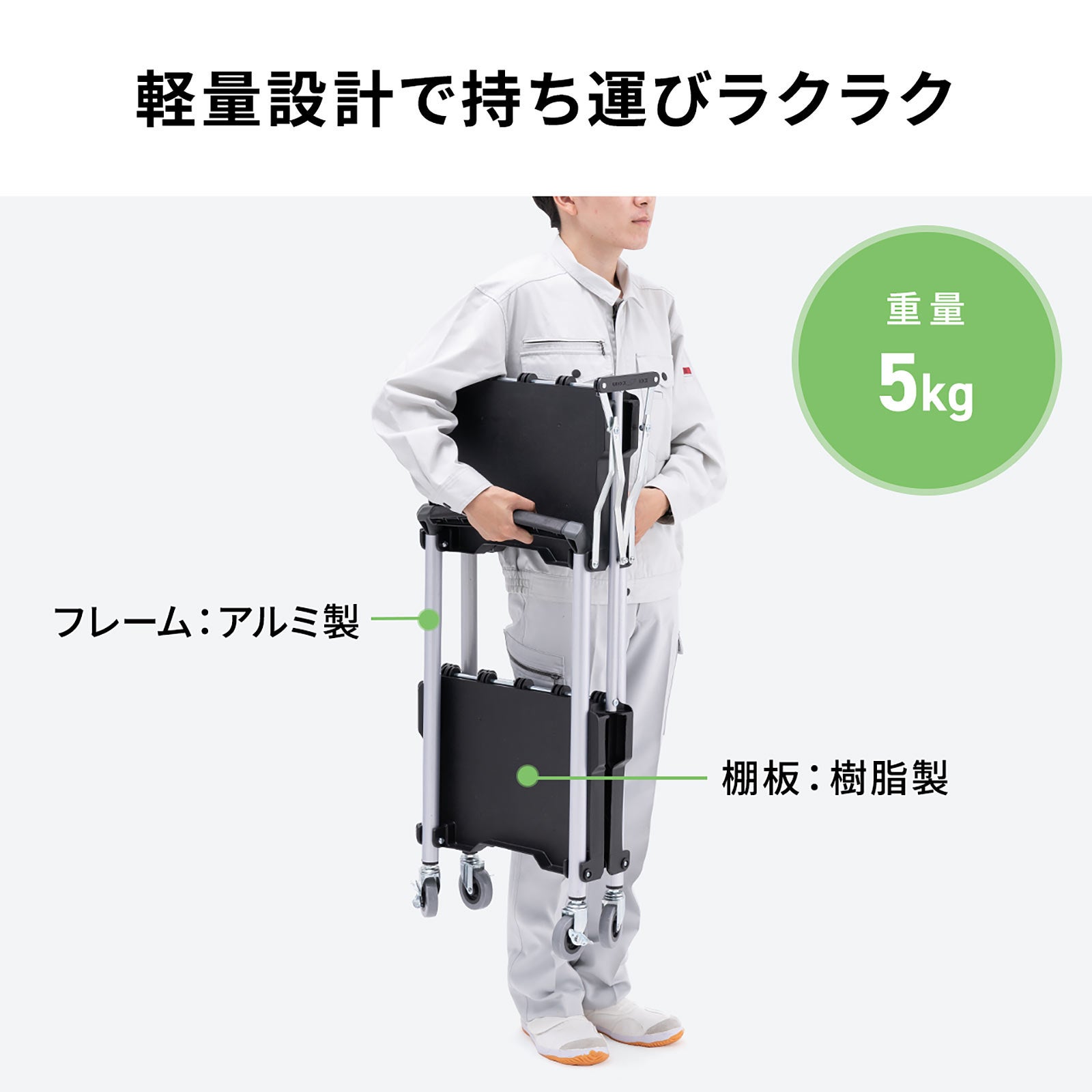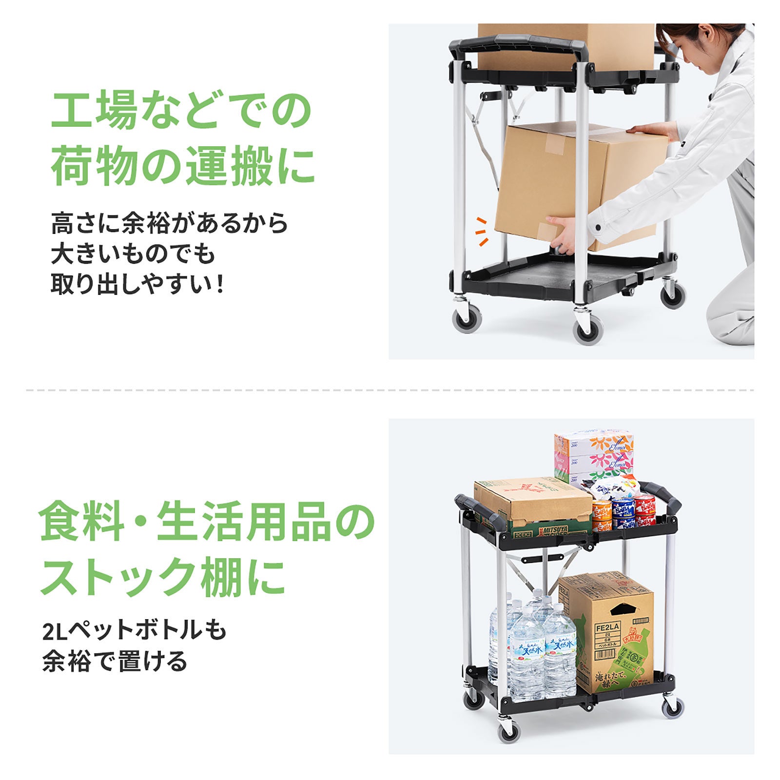 2段タイプで高さのある荷物もラクに運べる折りたたみワゴンを1月14日発売