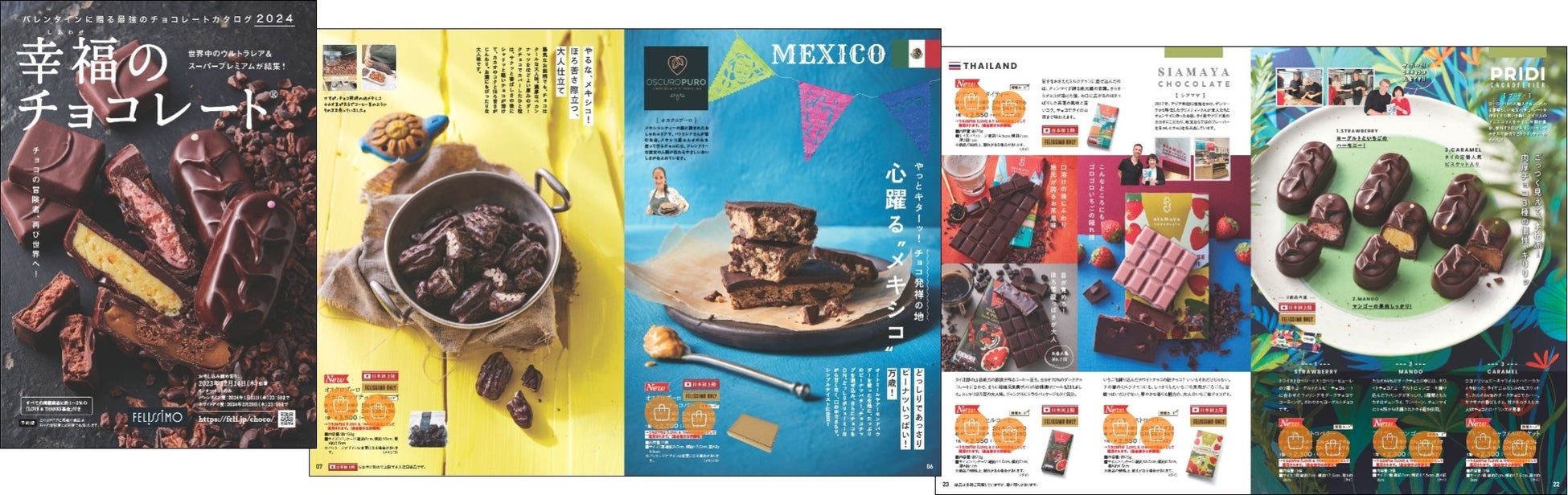 2018年にNHK番組『世界はほしいモノにあふれてる』に出演、2020年には2冊目の著書『「幸福のチョコレート」を探しにどこまでも』(新潮社)を出版した“チョコレートバイヤーみり”こと木野内美里が、コロナ禍を経て海外へのチョコ旅を再開し、メキシコへも初のチョコ旅を敢行し日本がまだ知らないチョコレートを紹介しています。今シーズンは、世界中のショコラティエに会いセレクトした、31の国と地域から95ブランド・総数165点、うち【日本初上陸】16ブランド・34点、【フェリシモ限定】135点を公開してウェブ予約販売を行っています。掲載の全チョコレートは販売価格の一部が「LOVE & THANKS基金」として、カカオの生産地ガーナの児童労働をなくす活動に拠出されます。