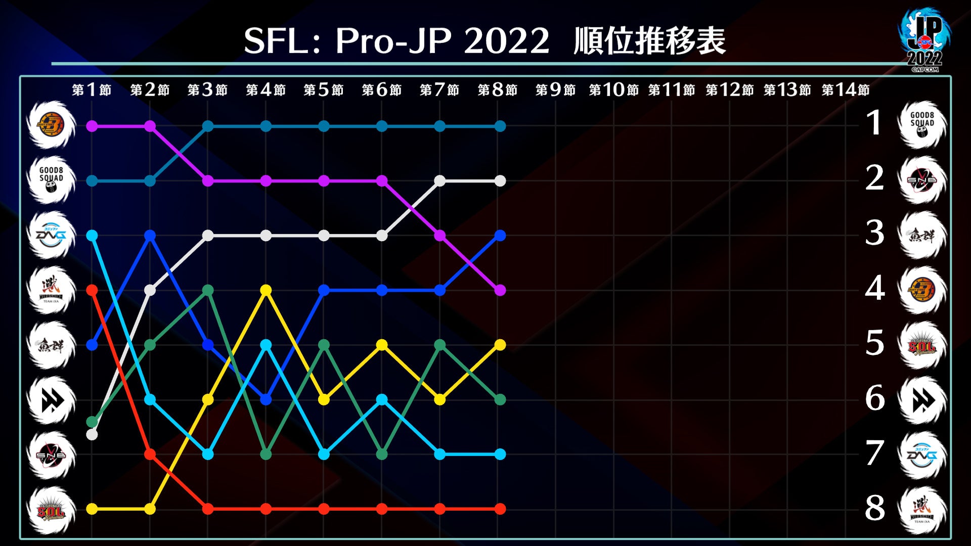 「魚群」は2節連続で40ポイントを獲得し、今回の勝利で単独3位に浮上した。この勢いのまま1位まで登り続けるのか、後半節要注目のチームと言っても過言ではないだろう。