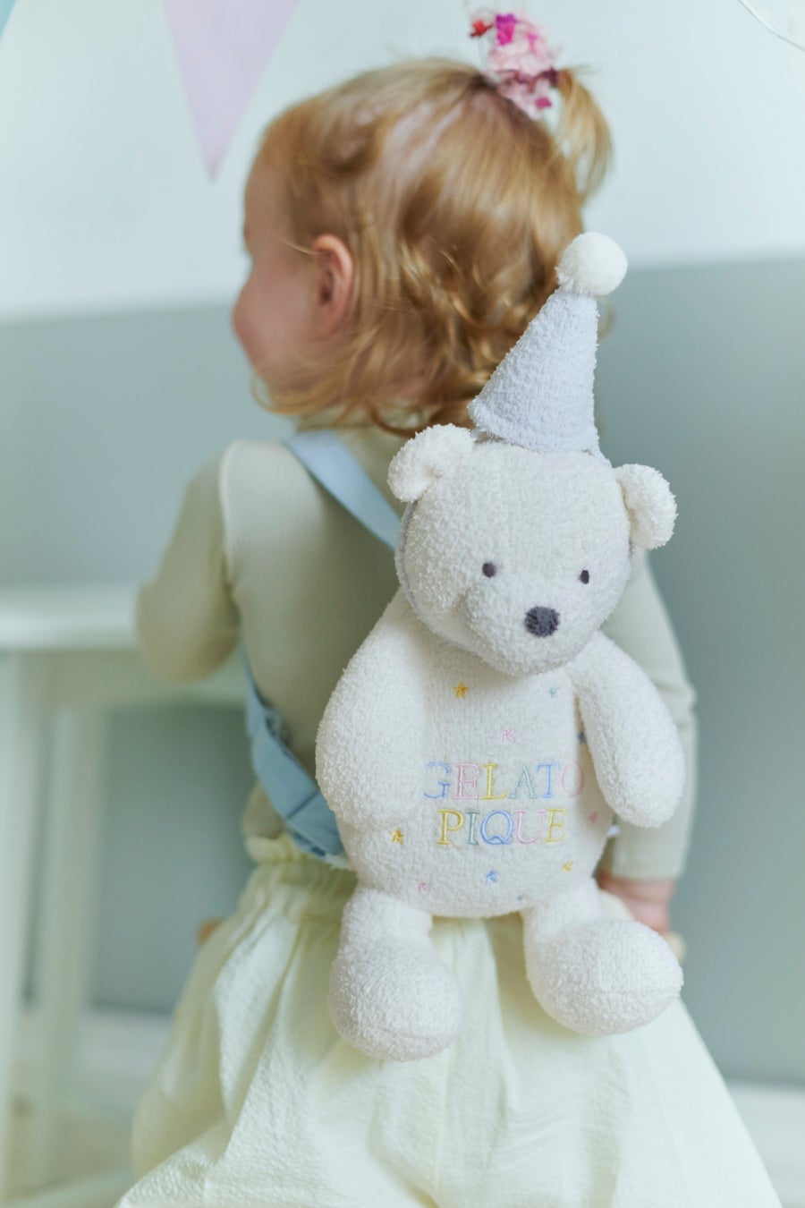 バースデーハットをかぶった愛らしいベアモチーフのリュック。