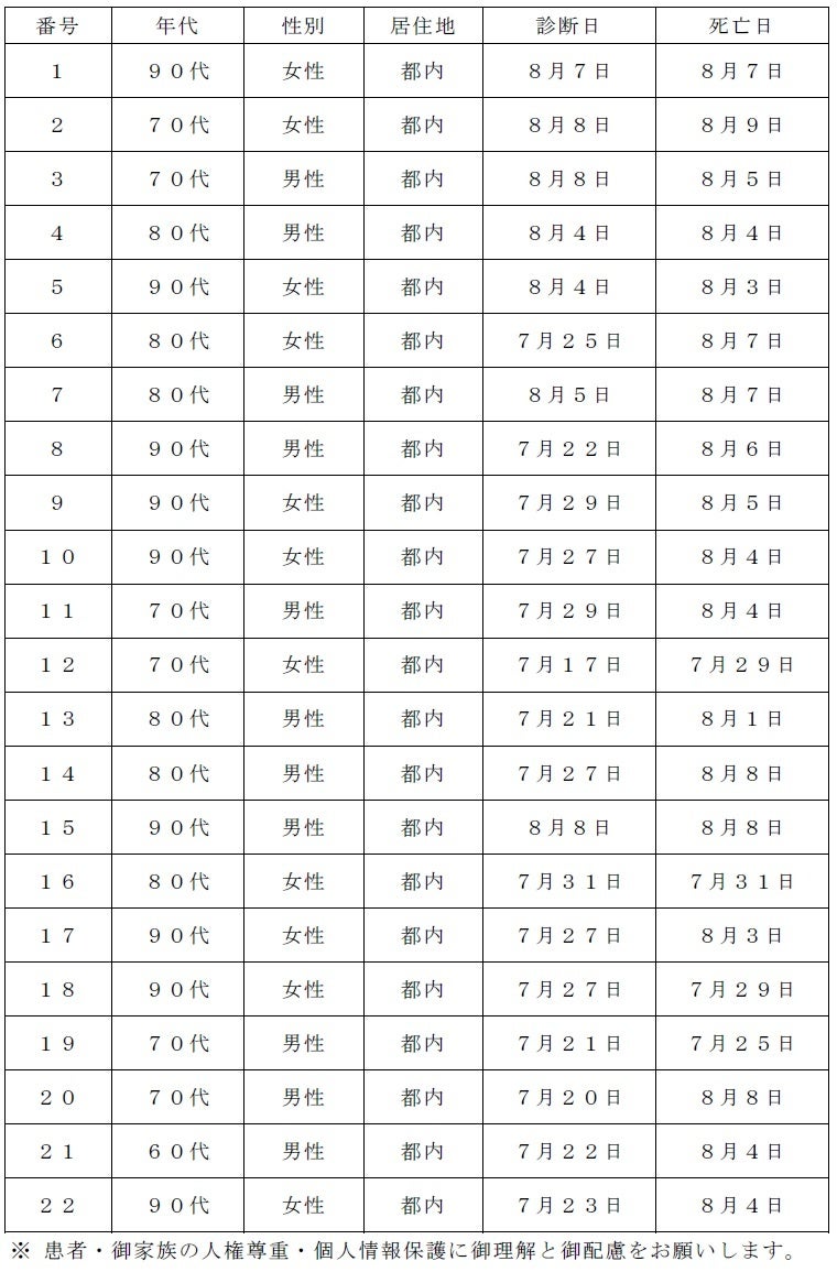 都内で新型コロナウイルスに感染した方が死亡されましたのでお知らせします。