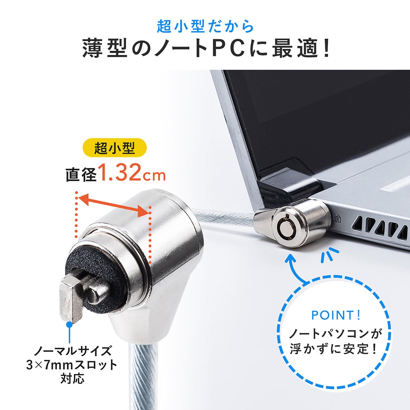 本製品は、薄型ノートパソコンに取り付けに最適な盗難防止用セキュリティワイヤーです。