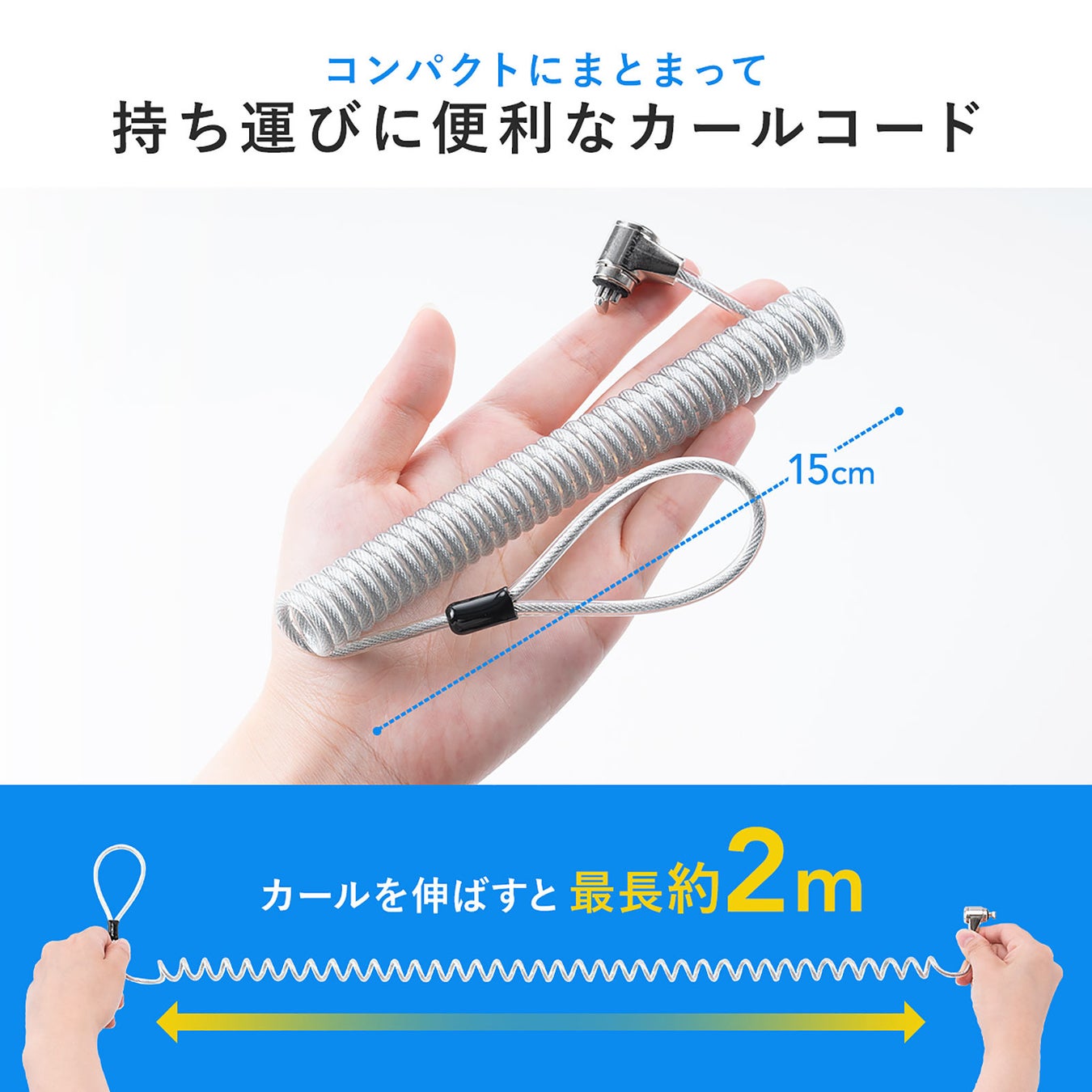 カールコードタイプで持ち運びしやすい 薄型のノートPC対応 盗難防止用セキュリティワイヤーを1月14日発売