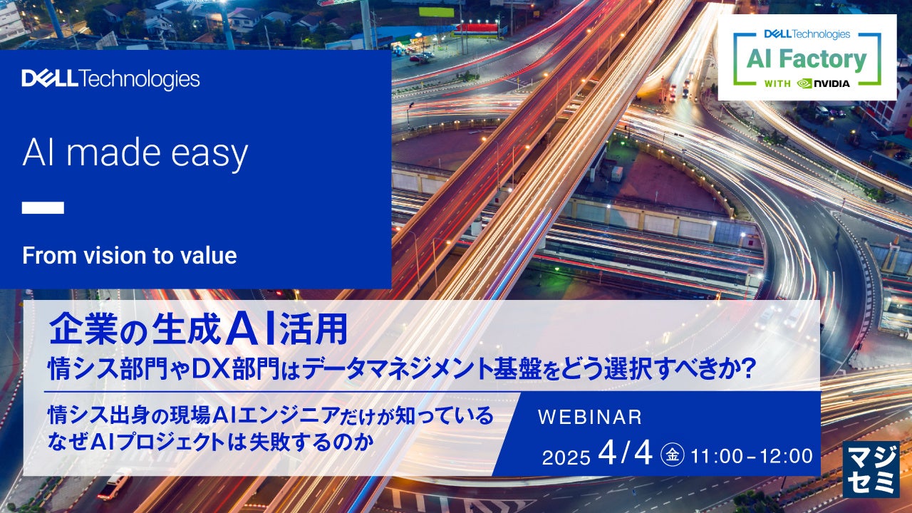 マジセミ株式会社は「企業の生成AI活用、情シスやDX部門はデータマネジメント基盤をどう選択すべきか?」というテーマのウェビナーを開催します。