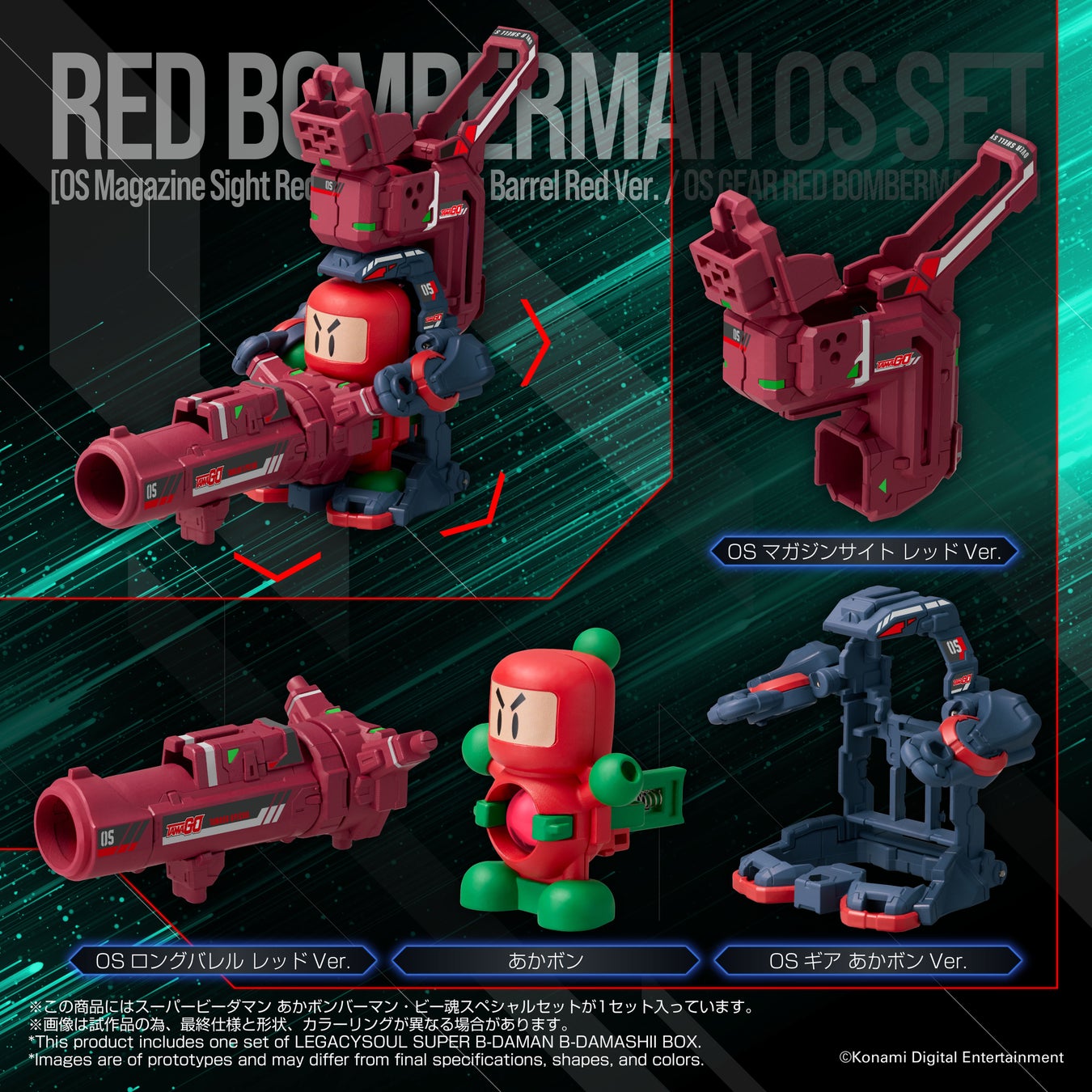 主人公・玉悟の初代愛機「あかボンバーマンビーダマン」は、時を越えて令和の新設計で完全復活。 OSギアのみならず、ロングバレル、マガジンサイトを同梱するスペシャルセットは、このBOXでしか手に入らない限定カラーで登場。 全国のビーダーはもちろんのこと、これを機会に触れる子どもたちも盛り上がること間違いなしです。