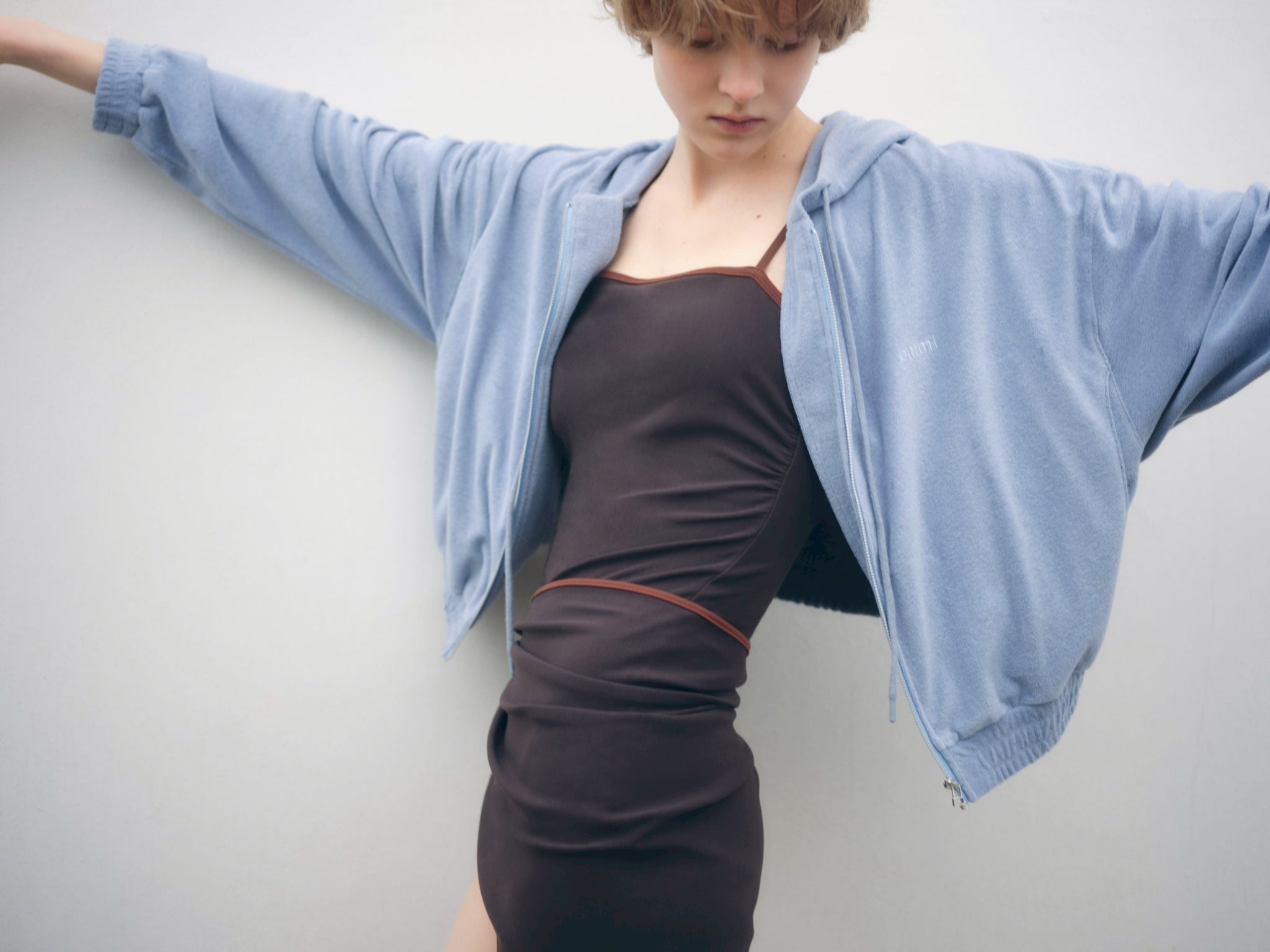 サステナブル素材を積極的に採用するemmiは、CO2の排出量の削減による環境負荷の軽減に貢献するPlaX™を採用。昨年ssシーズンより始まったコラボレーションの第3弾となります。