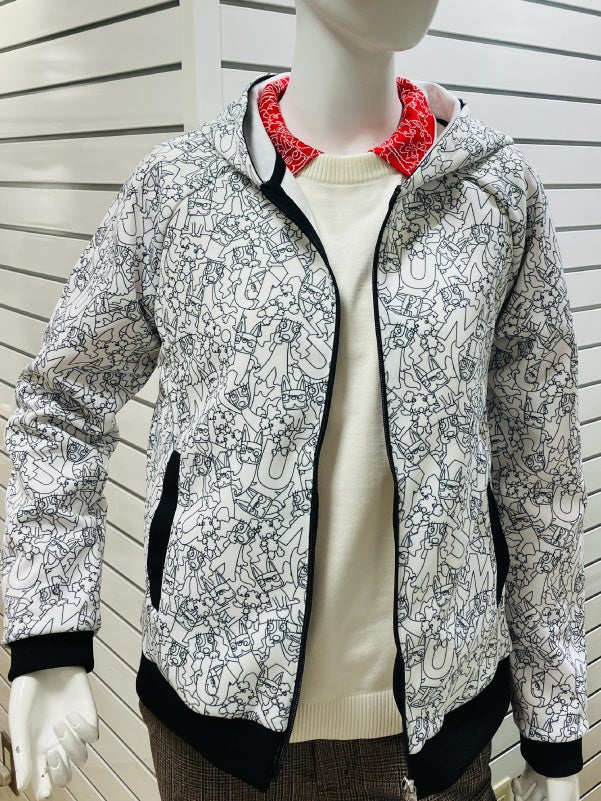 品番:701R7602〈M・U スポーツ〉のキャラクターとロゴを配したオリジナル総柄ブルゾン。ストレッチが効いてとても着やすく、ジッパーには可愛い骨のチャーム付き。可愛いブルゾンを羽織ってお出かけしませんか?