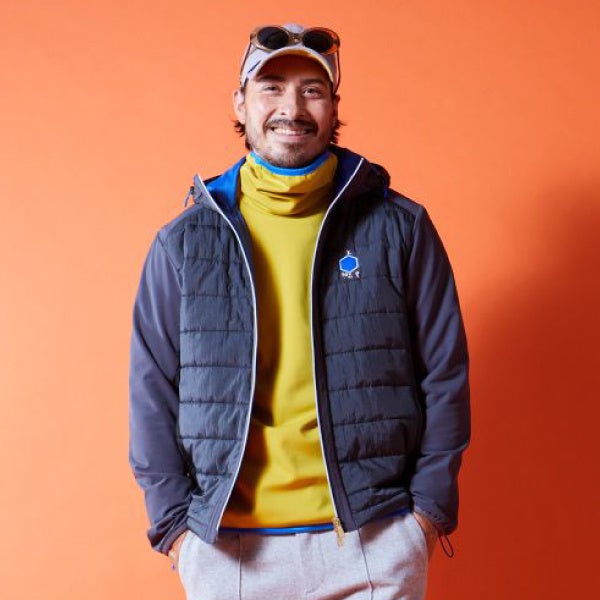撥水、UVカット、保温性、優れたストレッチ性を持ち合わせた多機能素材。撥水加工はフッ素フリーで環境に配慮。身頃の中綿の表地には繊維廃棄物から再生ナイロンを使用。ヴィンテージワッシャーによるハイブリッドな仕上がり、中綿は「sunstateⅡ」を使用。