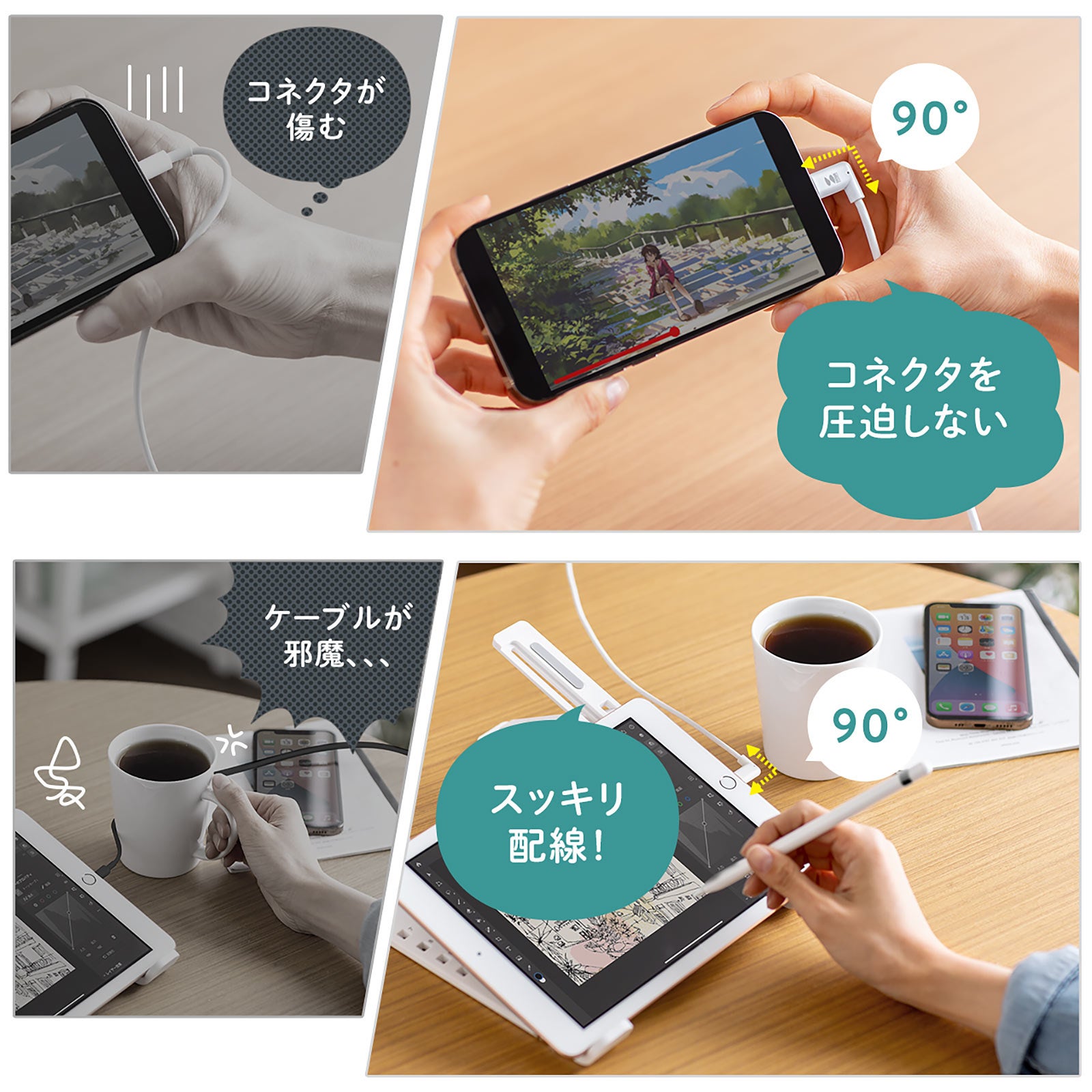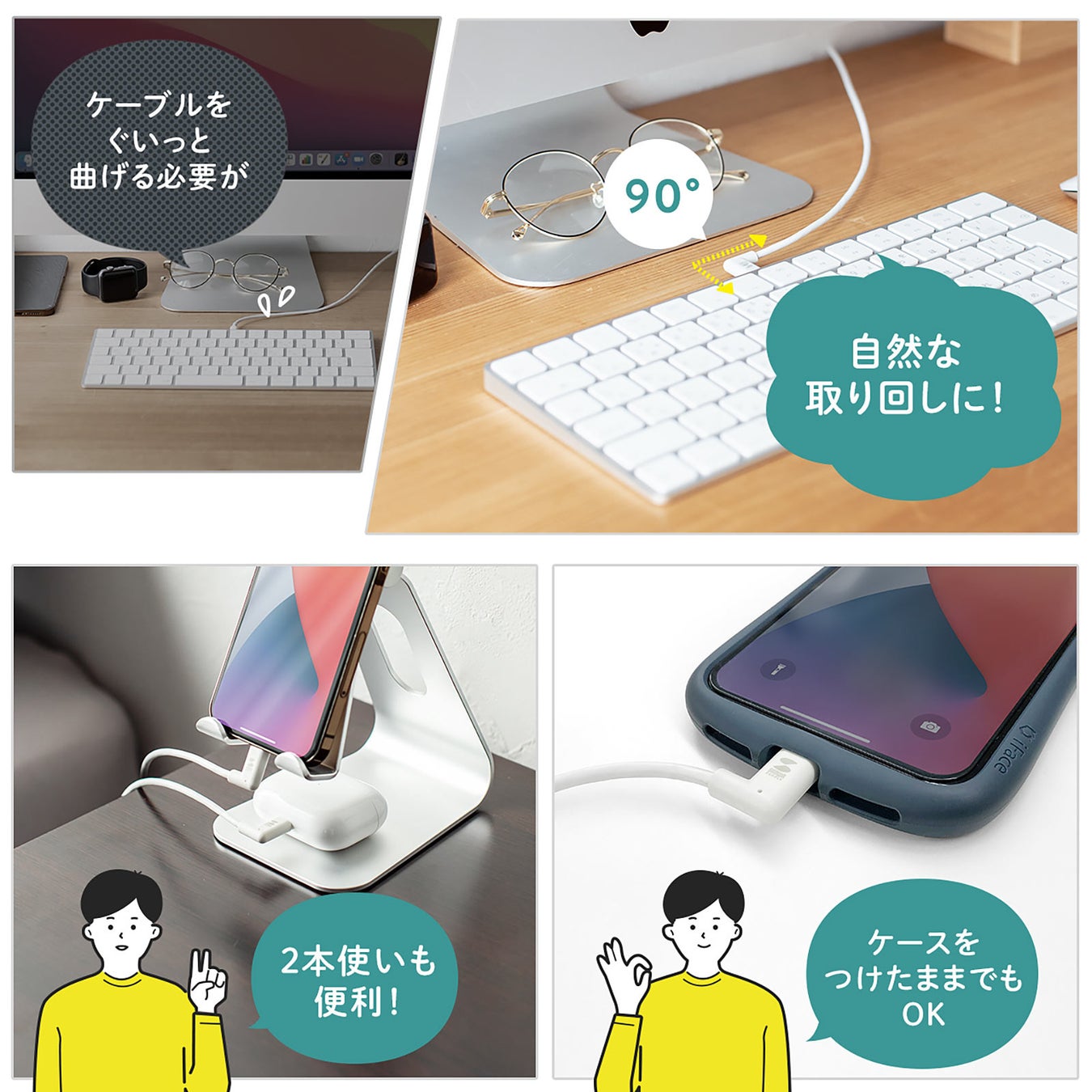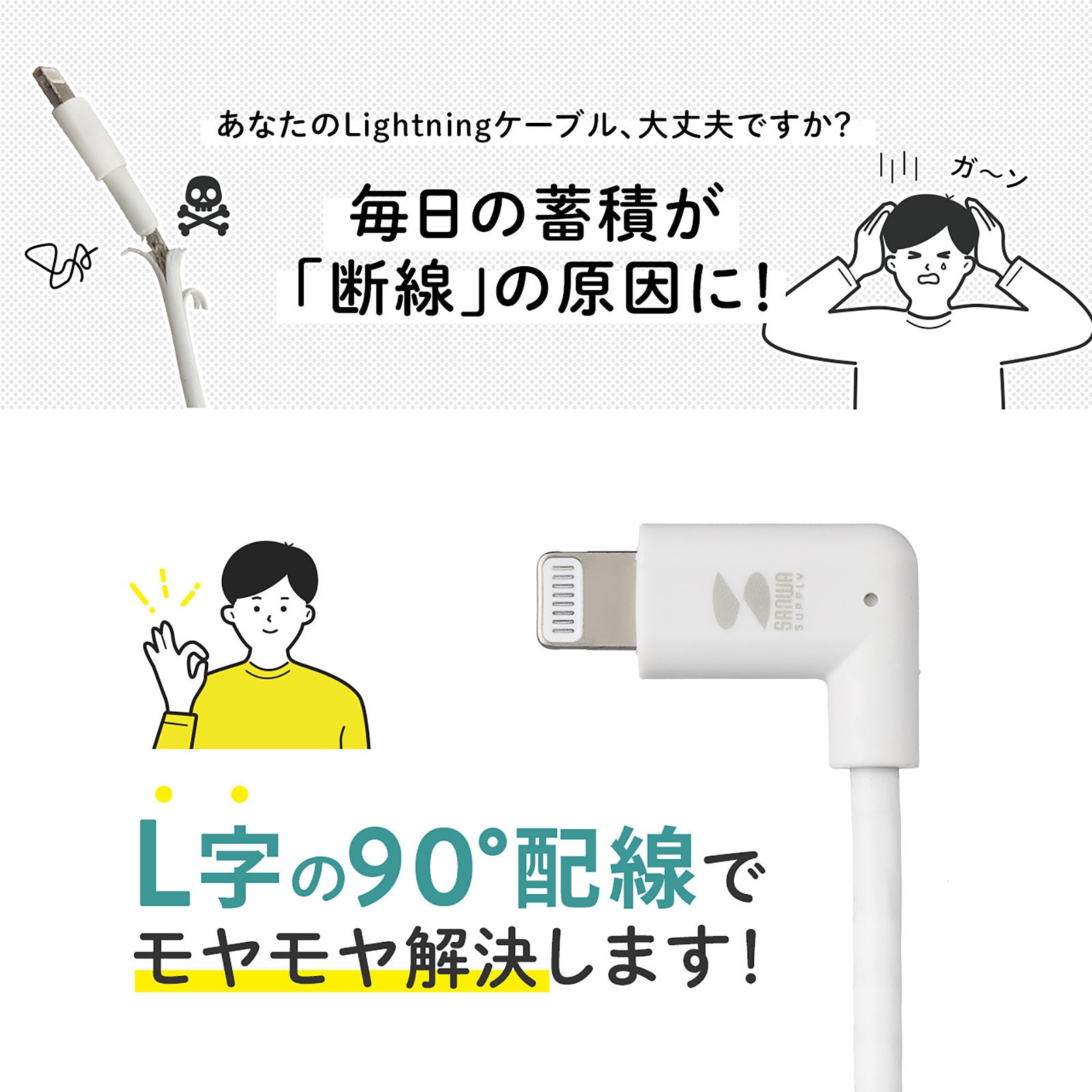 L字コネクタで配線しやすく、断線しにくい!Apple MFi認証のライトニングケーブルを1月18日発売