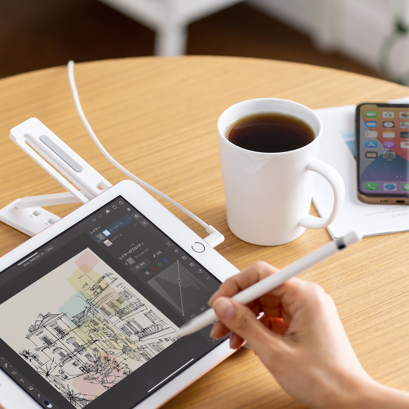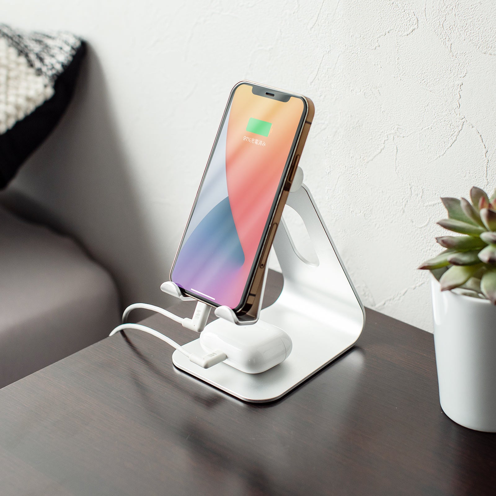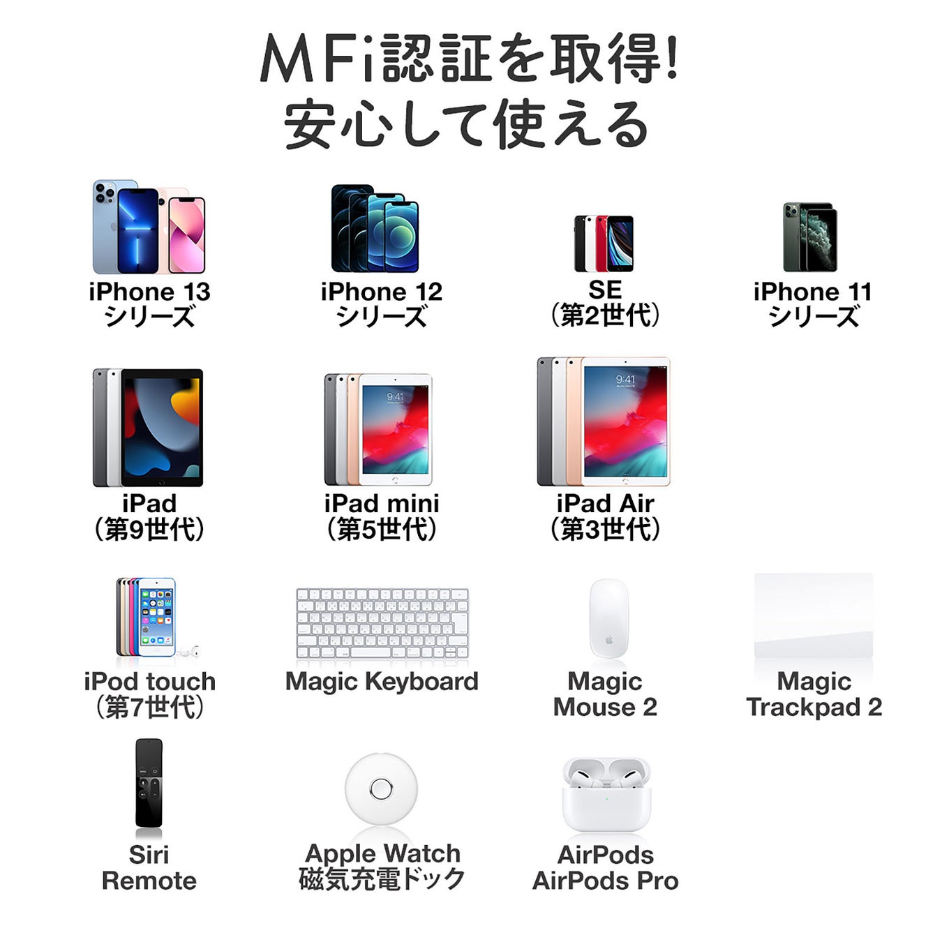 本製品は、iPhone、iPad、iPod touch(第6世代)、AirPodsなどのLightning端子搭載機器に対応したLightning USBケーブルです。L字型ライトニングコネクタ採用で、iPhoneを横向きにしてゲームをする時、iPadで絵描きをする時など、自然な形でケーブルの取り回しができます。