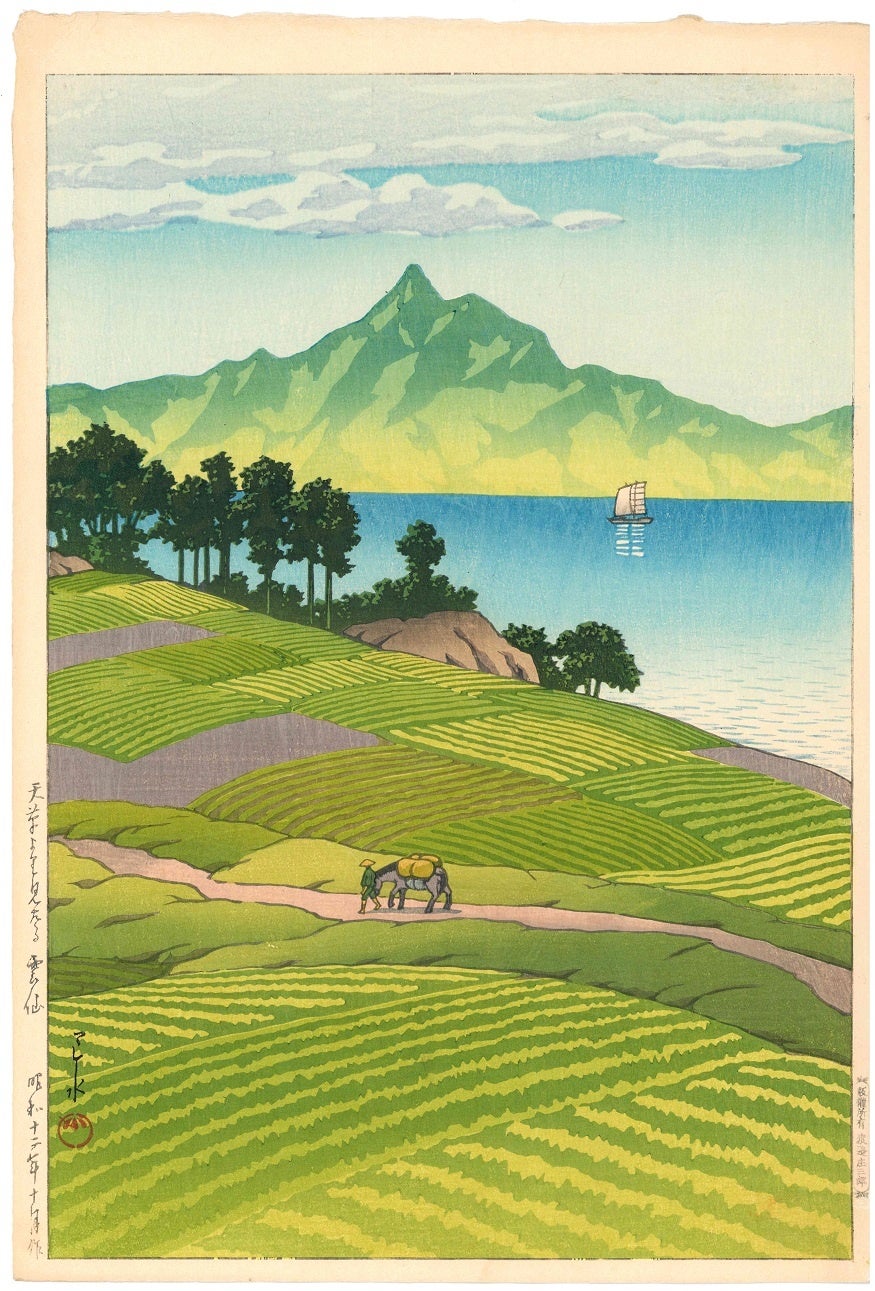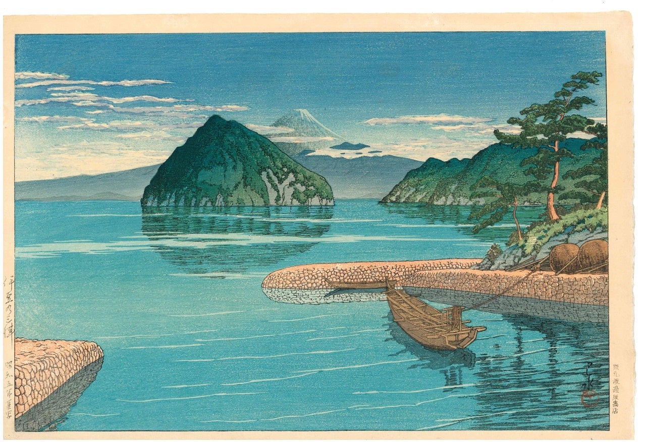 大正7年に版元渡邊庄三郎と知遇を得、 日本全国を巡り、生み出された木版画作品群は郷愁を誘い世界中の人々を魅了します。