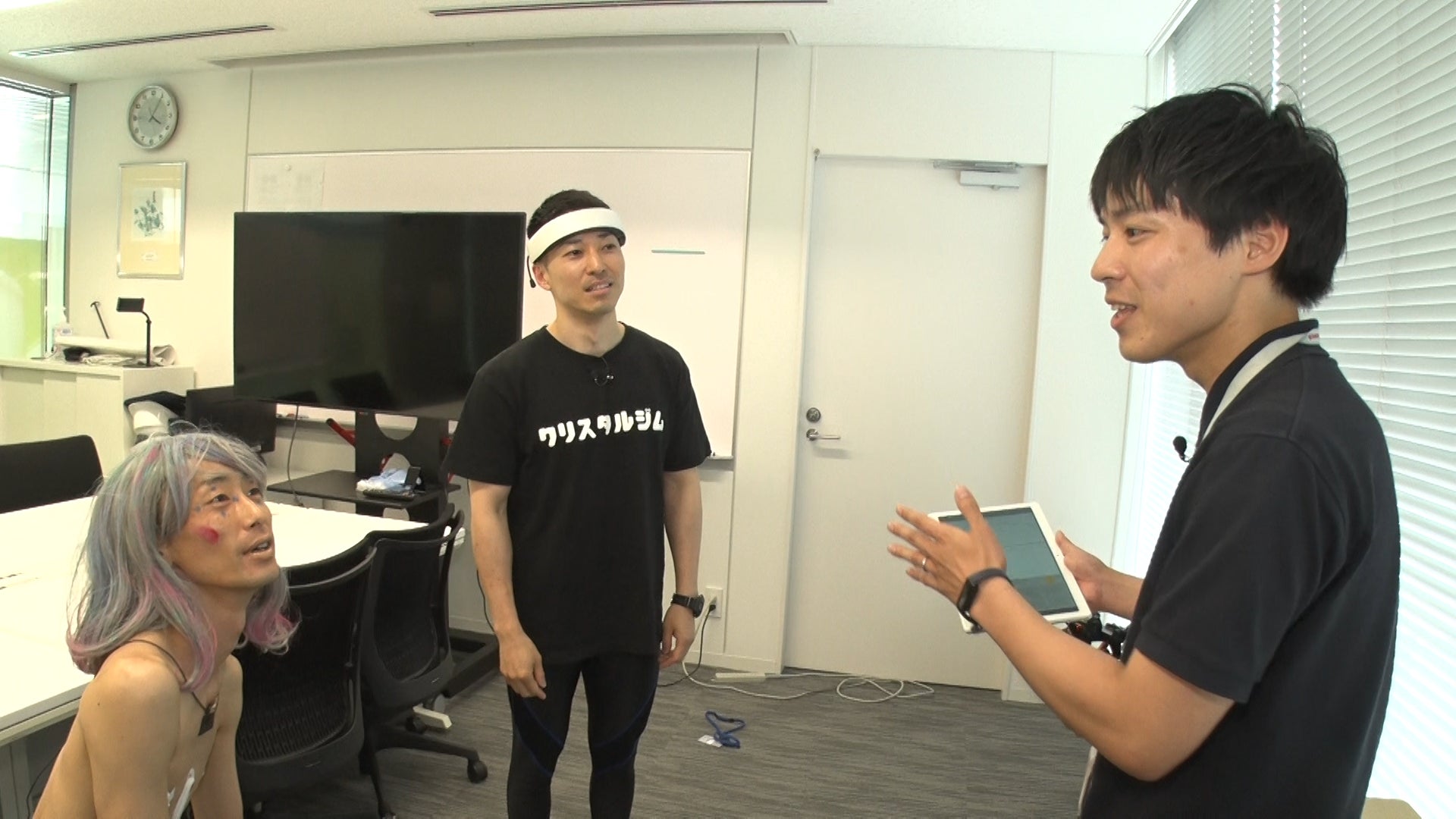 今回、「笑いが脳と心にどんな影響を与えるのか?」を研究するためロケに行ったのは、クリスタルジムトレーナーの井下大活躍と、セット芸人(クリスタルジムでお客様と一緒にトレーニングをする芸人)のSJ(GAG)。まさかの人選に、野田も苦笑いを浮かべます。しかも、SJはある格好をしていて……。