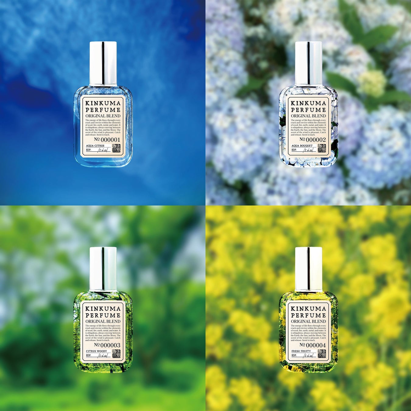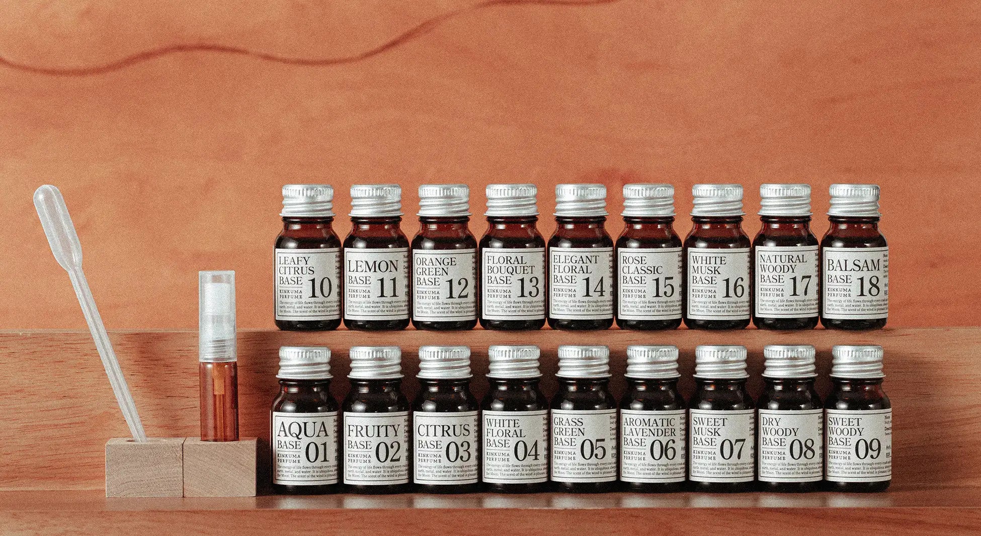 構想、開発に7年以上をかけて、「金熊香水」が独自に開発した、18種類のベースフレグランスです。それぞれが単品でも香水としてお使いいただけます。