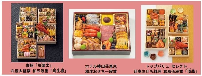 - 名店の味をご自宅で!料亭やホテルなど、豪華おせちを取り揃え (一例)