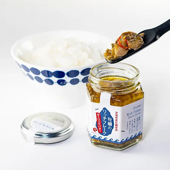 宮城県産牡蠣を細かく刻み、風味豊かなガーリックと、こくまろバターで味付けしてオリーブオイル漬けにしました。贅沢でリッチな味わいを様々なアレンジでお楽しみください。