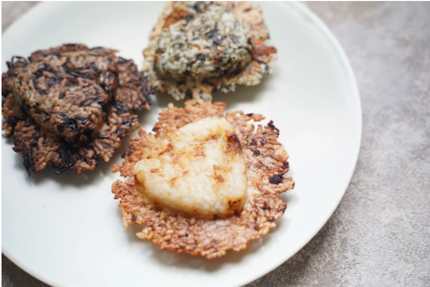 こだわりの素材を使用した羽根つきの焼きおにぎり。今回のフェア限定で、やまやの明太子とのコラボ羽根つき焼きおにぎりも販売いたします。