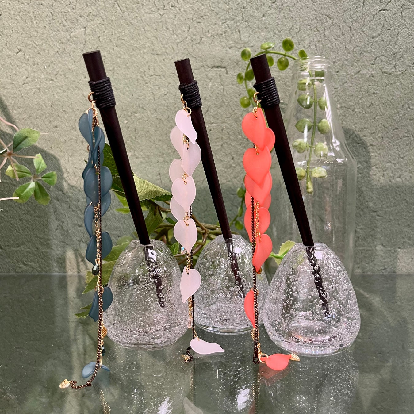 滴る雫にも似た花弁が日に透けた様子を表現した上品な一本簪です。