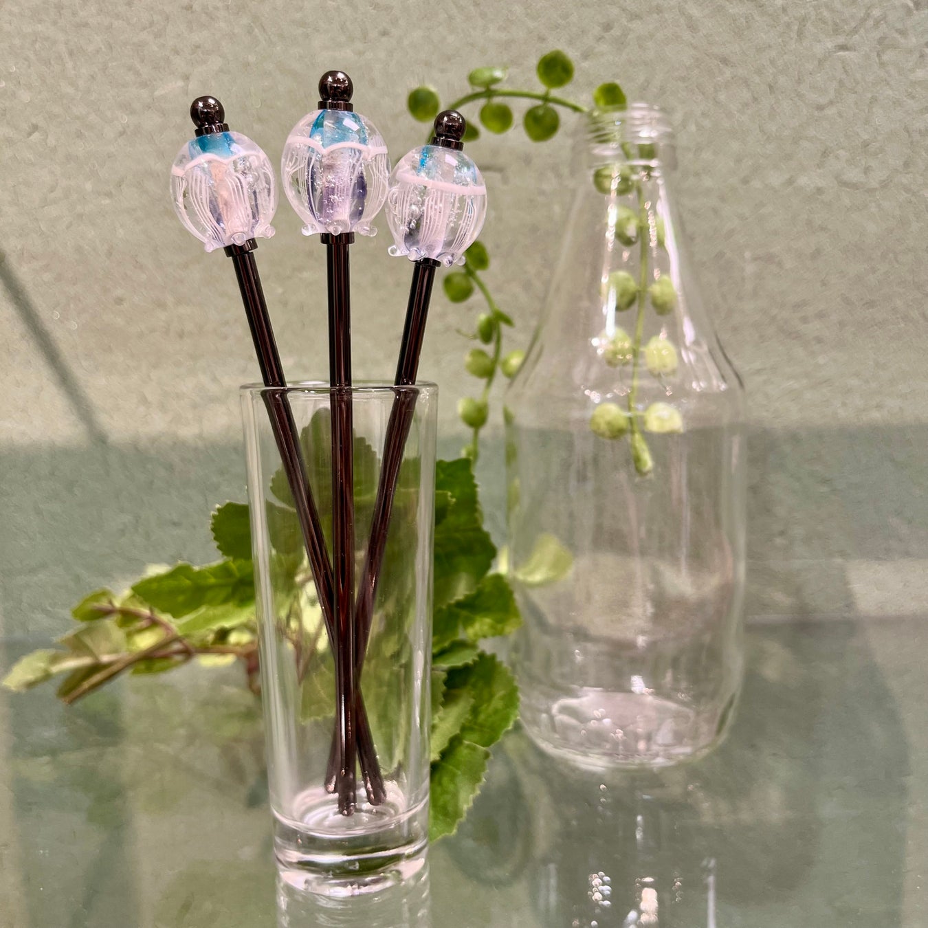 ふわふわと海を漂う水海月をイメージした立体感のあるとんぼ玉簪です。