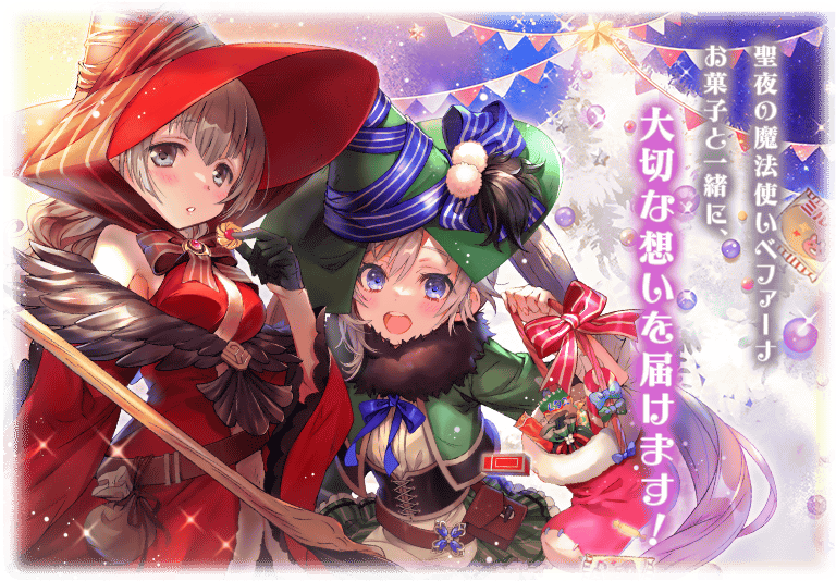 本イベントでは、クリスマスの魔法使い・ベファーナに変身した「里見那由他(CV.春花らん)」と「八雲みかげ(CV.進藤あまね)」が那由他の家に間違って届いたプレゼントを、本来の届け先に贈るために奔走するストーリーとともに進行するストーリークエストをプレイできます。