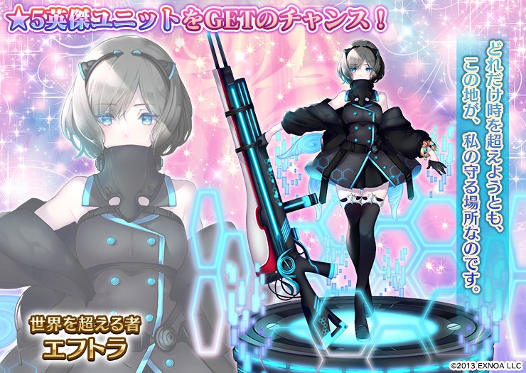 緊急ミッション「繋がる世界と時空を渡る戦士」では、特定の条件を満たすと、レアリティプラチナ【英傑】の異世界戦士『世界を超える者エフトラ』が手に入ります! ぜひ、仲間にしてください!