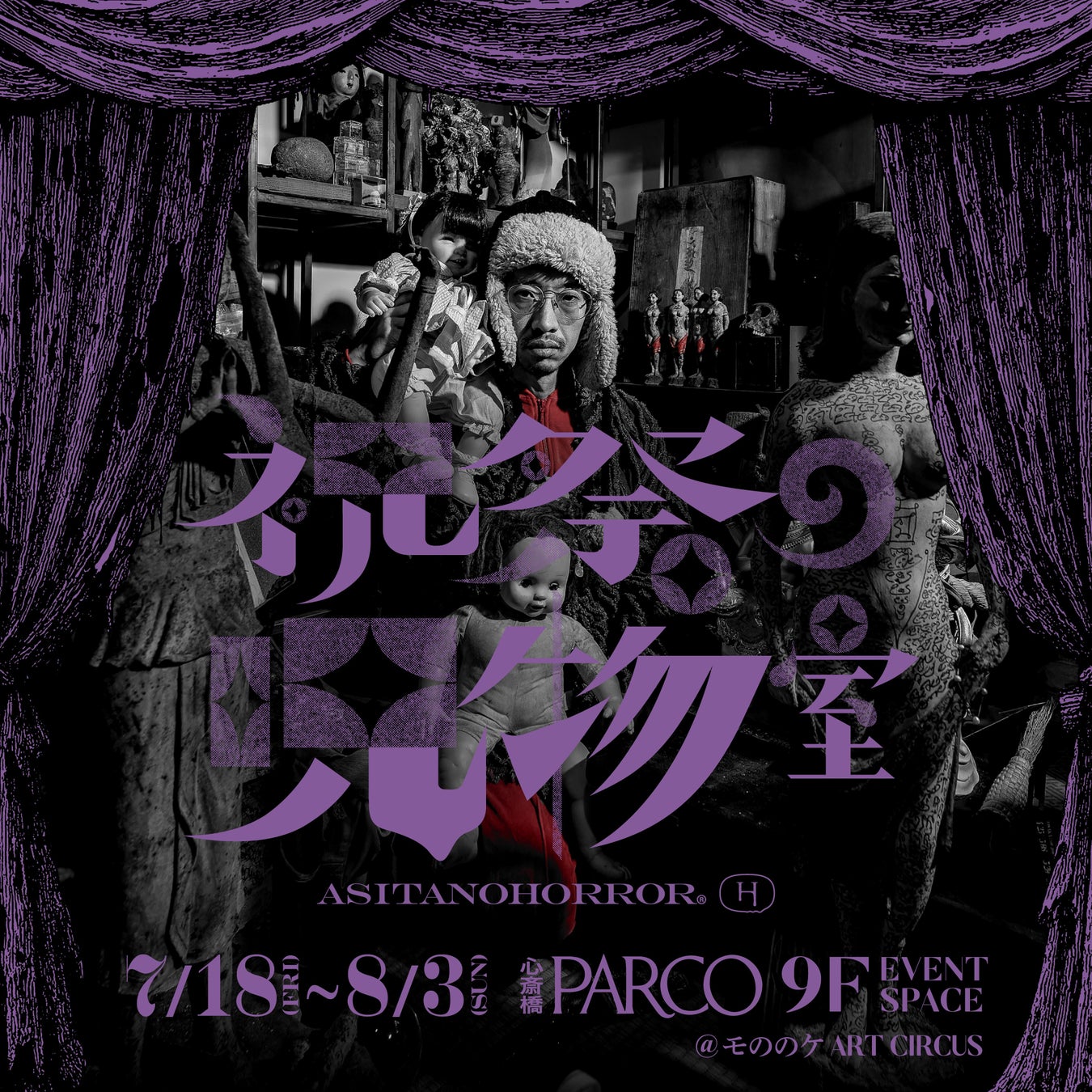 昨年、一昨年と開催され、大阪・東京・札幌にて大盛況となった『祝祭の呪物展』を手掛けるホラーデザイン結社「アシタノホラー」と心斎橋PARCOがタッグを組み、オカルトコレクター田中俊行氏による呪物の展示[祝祭の呪物室]やSNS上で話題となった志茂浩和氏による[弁天様]など総勢100名以上の作家によるモノノケ作品、呪物、メディアアートを展開します。