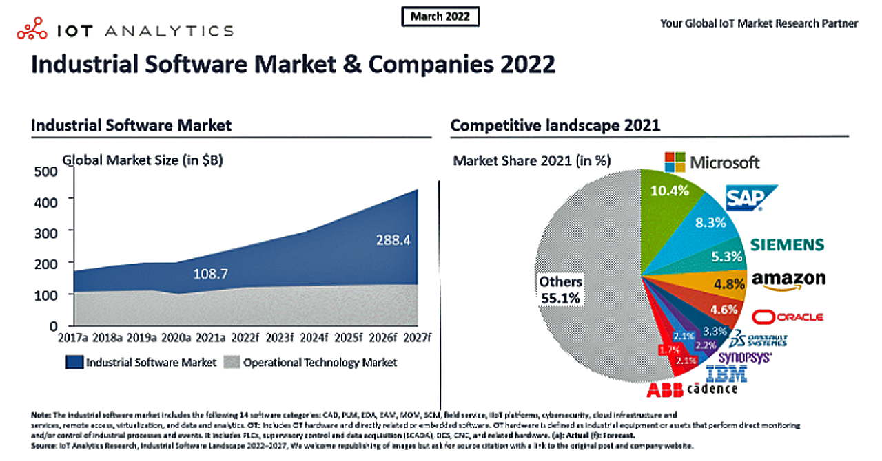 産業用ソフトウェア市場:今後5年でCAGR18%の成長予測、マイクロソフトは2021年に最大ベンダーに