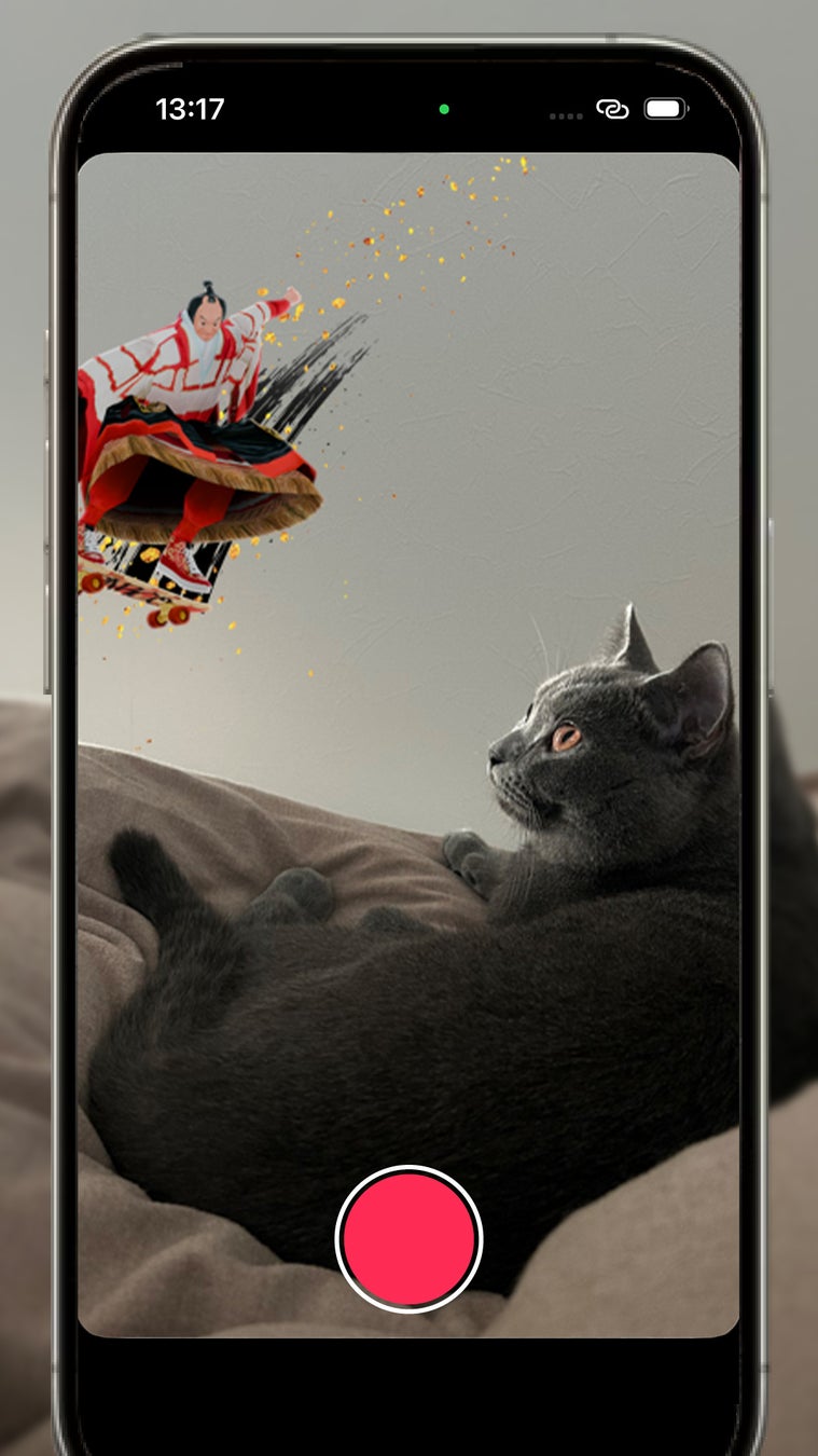 CMの陀羅助が街に飛び出した後を追体験いただけるエフェクトで、ご自身の街の景色やご家庭のテーブル・ペットの背中などが即席のジャンプ台(ランプ)に早変わり。陀羅助がジャンプ台の上を跳び、トリックを披露するユニークな体験をお楽しみいただけます。