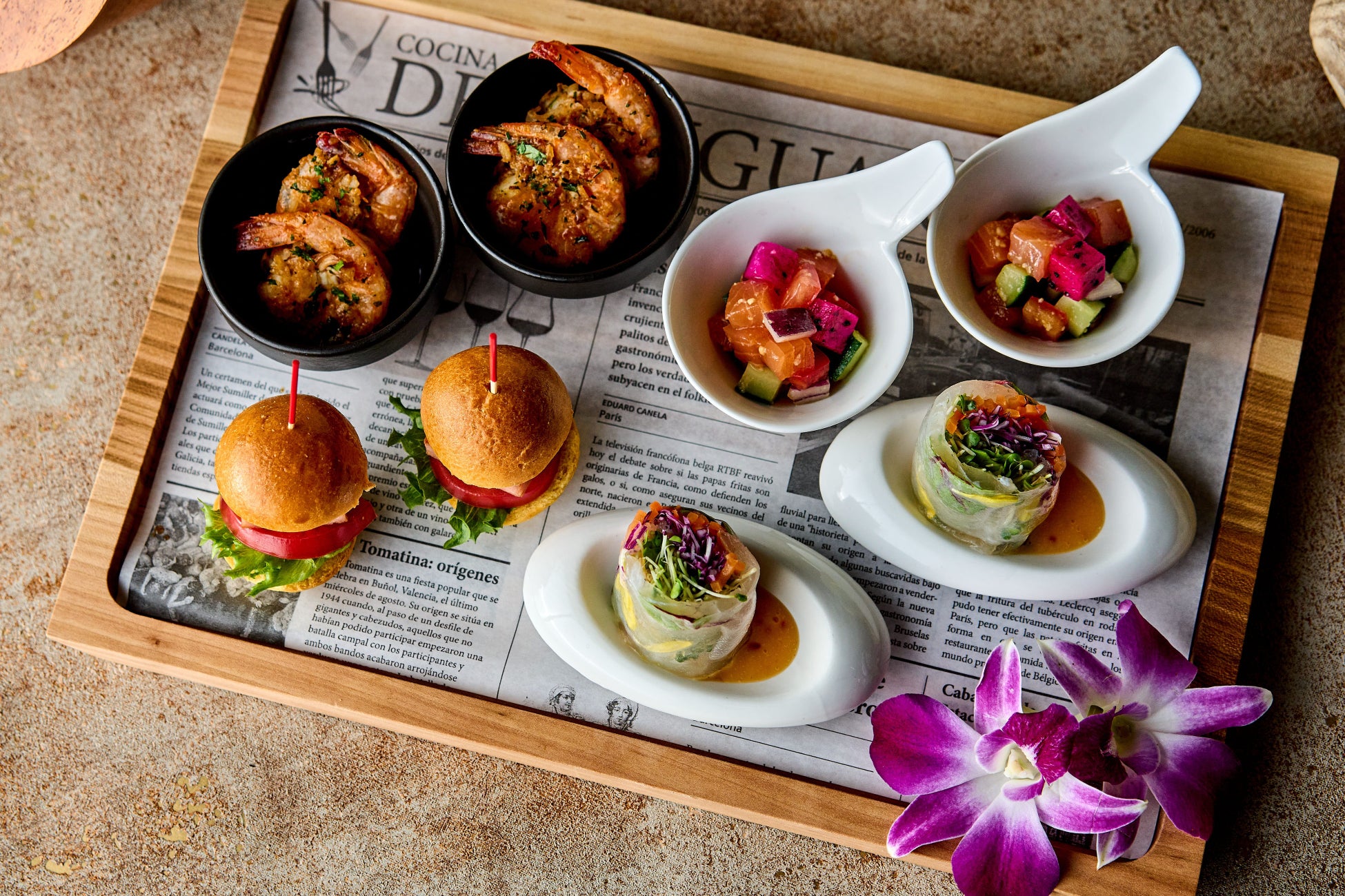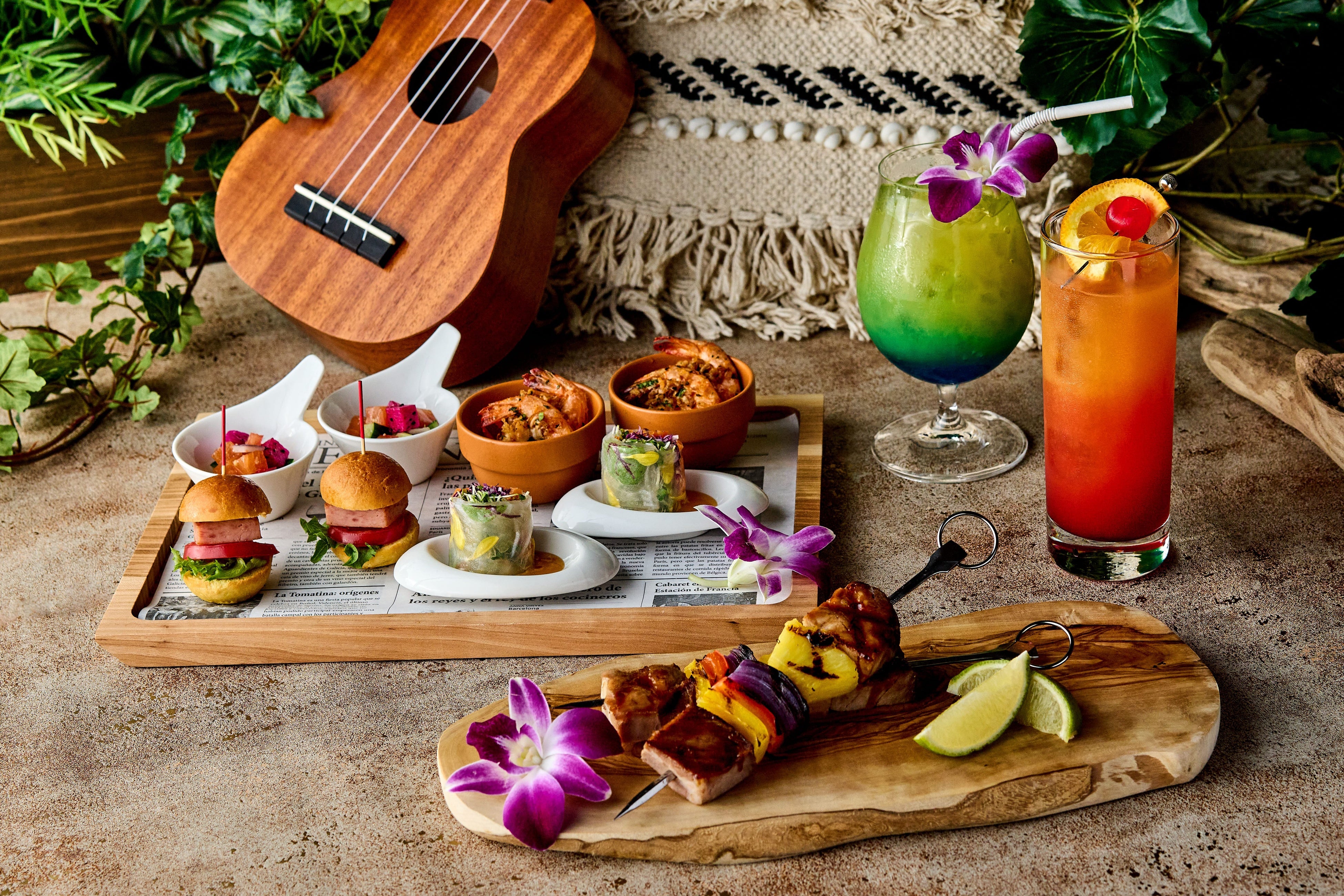 当日は本イベント限定のフリーフロー付きトレント特製ブッフェの食事とともにお楽しみいただけます。シェフが目の前で切り分けるローストビーフ、ハワイの雰囲気を感じられるミニスパムバーガーや大豆ミートのロコモコなどバリエーション豊富なメニューをご用意いたします。イベント序盤ではお食事やドリンクをお召し上がりいただきながら、ハワイの雰囲気に浸っていただきます。その後、お好きなドリンクとともにパフォーマンス会場へ移動していただき、都会の喧騒を忘れ、渋谷の街並みを背景に心地良いウクレレの音色とフラダンスの魅力を存分に満喫していただけます。