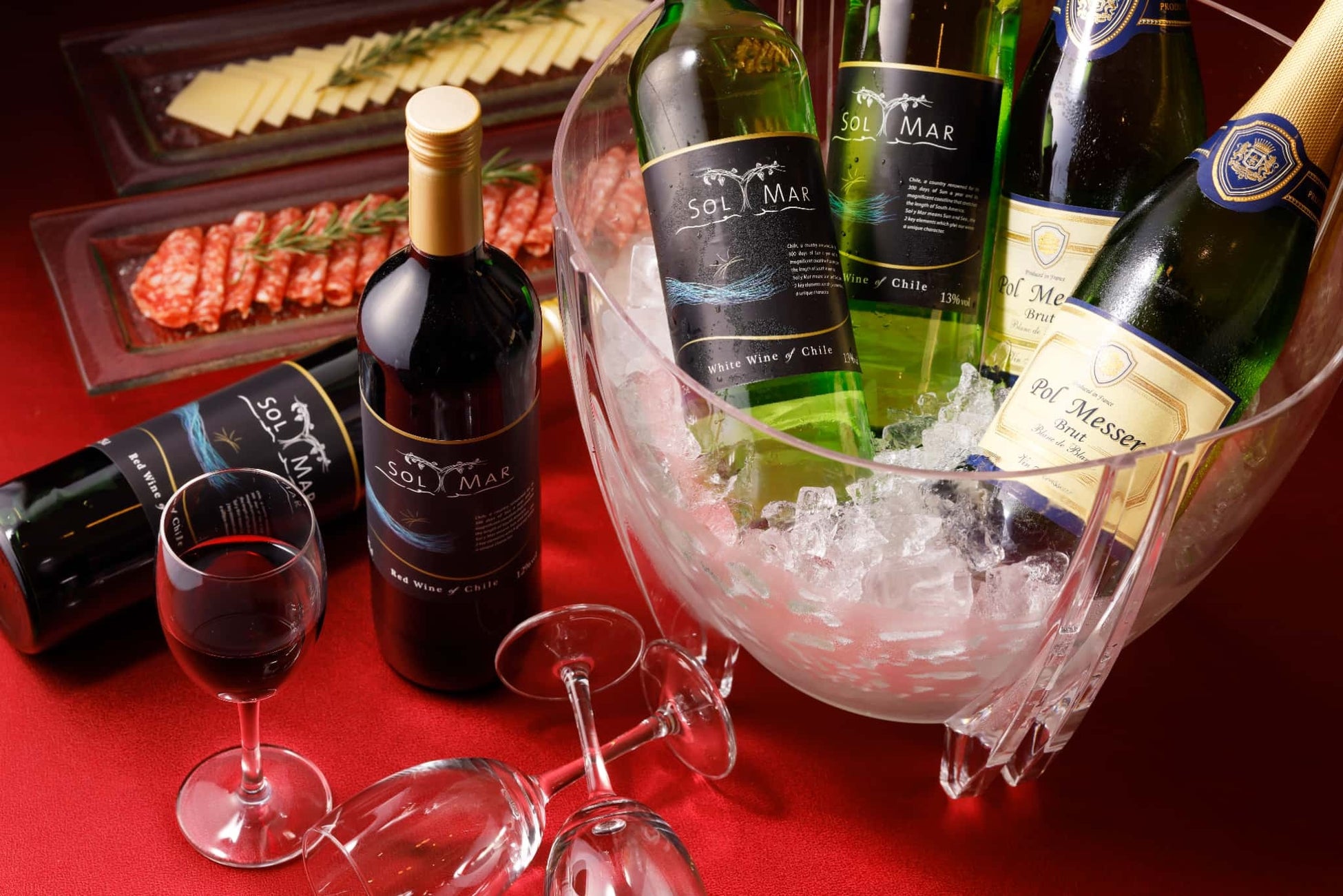 また、今回のもう一つの目玉はワインの飲み放題です。赤・白・スパークリング3種類のワインをご自身で注いでお楽しみいただけます。お好きな料理にお好きなワインを組み合わせてご堪能ください。