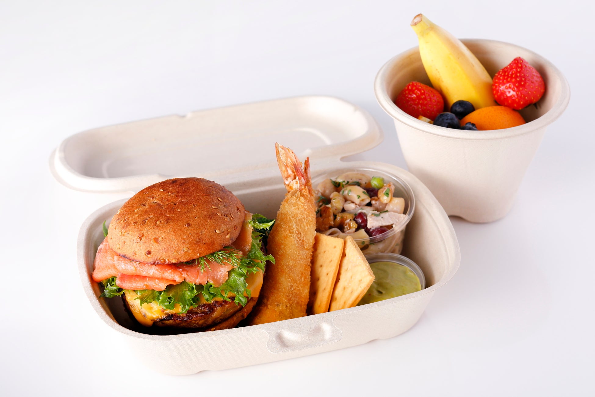 「今までの努力を全部発揮できるように」という願いを込めた『ZENBバーガ-弁当』は、豆や野菜をまるごと使ったグルテンフリーの商品が人気の株式会社ZENB JAPAN(愛知県半田市、以下ZENB)とのコラボレーションメニューがずらり。黄えんどう豆を使用したグルテンフリーのバンズで味わう『スモークサーモンと特製パティのZENBバーガー』や『ZENBマメロニサラダ』、海老フライなど、ボリューム満点のラインアップです。