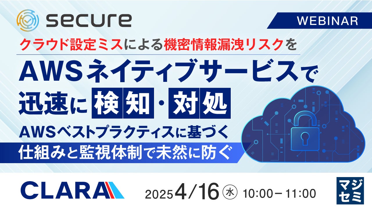 マジセミ株式会社は「クラウド設定ミスによる機密情報漏洩リスクをAWSネイティブサービスで迅速に検知・対処」というテーマのウェビナーを開催します。