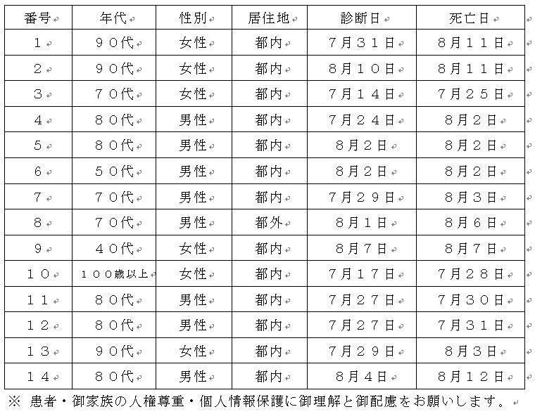 都内で新型コロナウイルスに感染した方が死亡されましたのでお知らせします。お亡くなりになった方のご冥福をお祈り申し上げます。