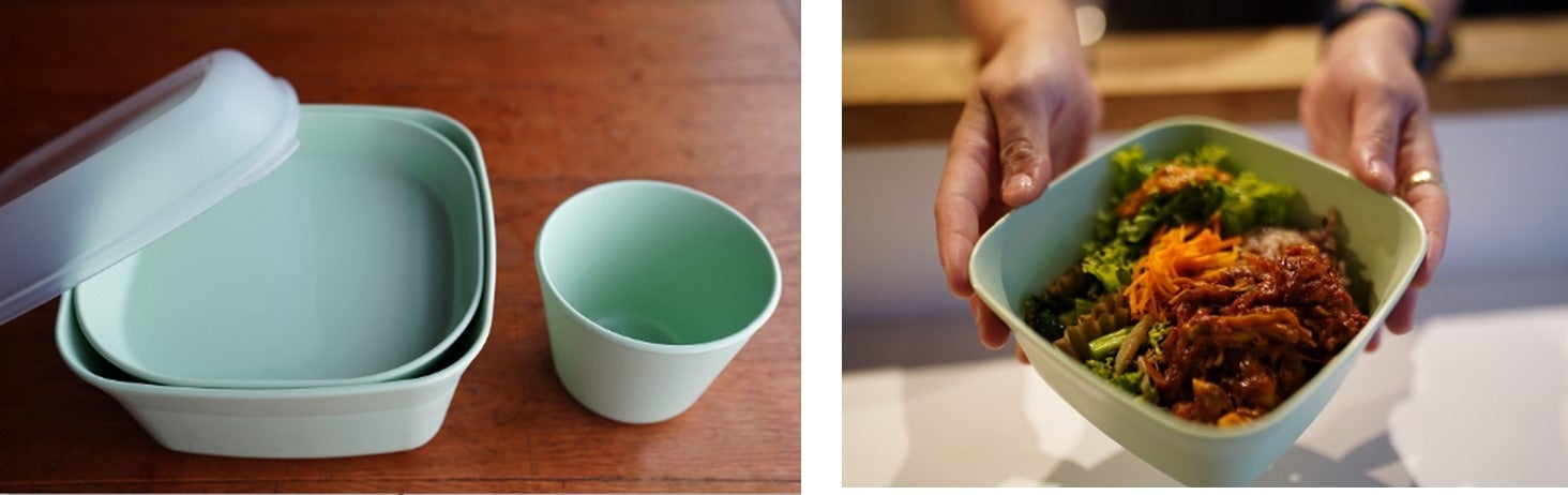 地域共通のリユース容器をみんなでシェアすることで、テイクアウト時の使い捨て容器を削減します。