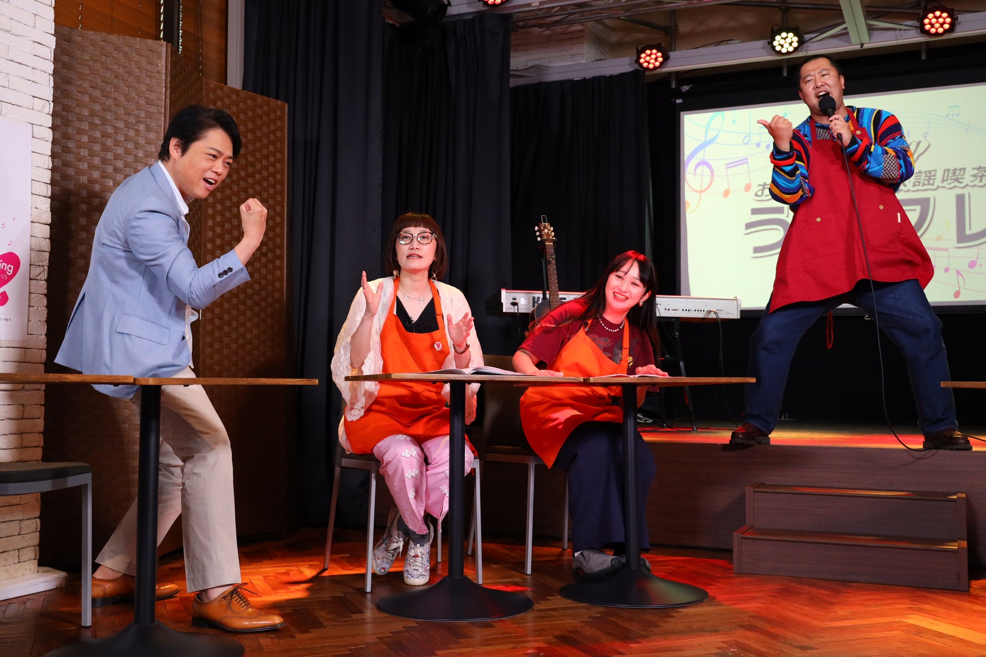 とにかく明るい安村とスパイク(松浦志穂、小川暖奈)がゲスト歌手と友だちになる、音楽番組「Singing おしゃべり歌謡喫茶『うたフレ』」の#15が、9月7日(土)19:00よりBSよしもとで放送されます。今回はゲストに三山ひろしと望月琉叶を迎えました。