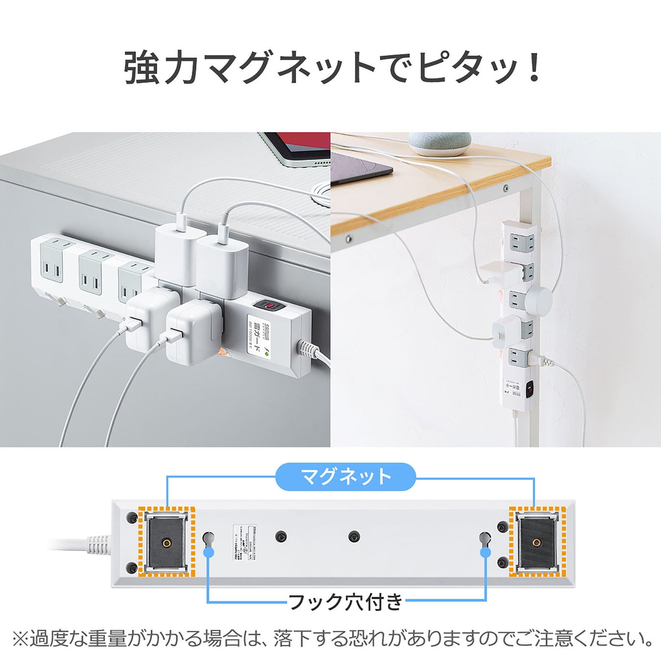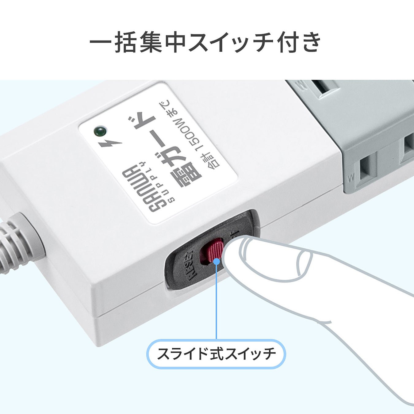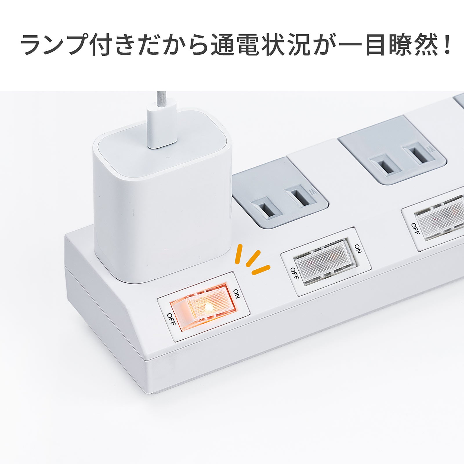 電源タップ 10個口 2m 個別スイッチ 一括集中スイッチ 雷ガードつき ホワイト