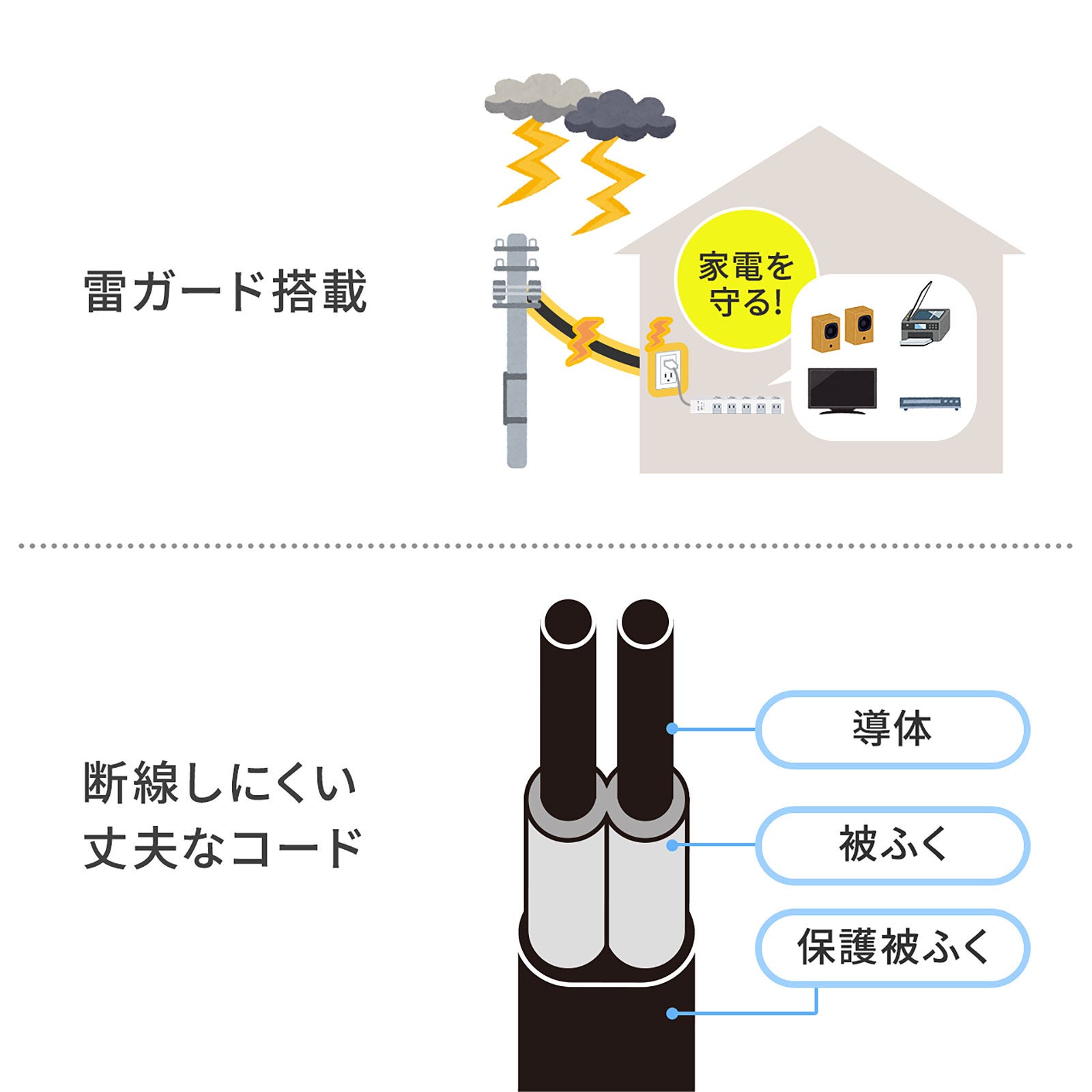 本製品は、差込口10個と長さ2mの電源コードを備えた電源タップです。