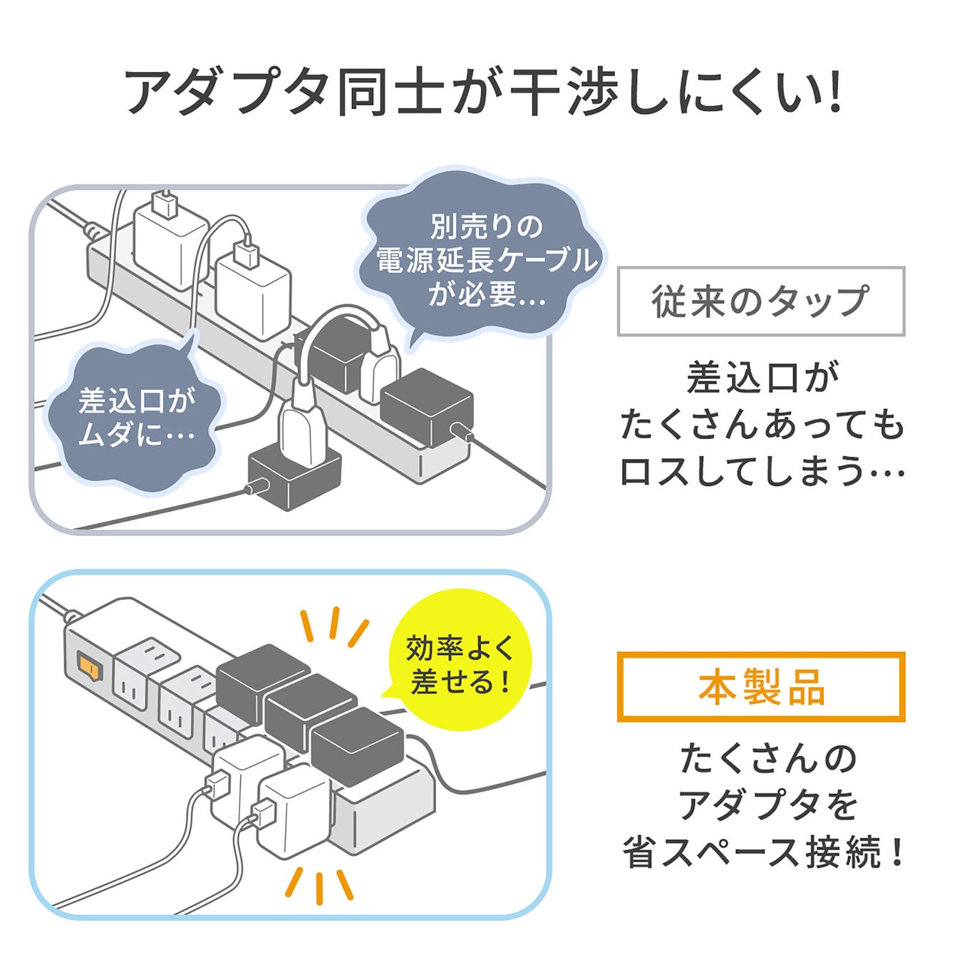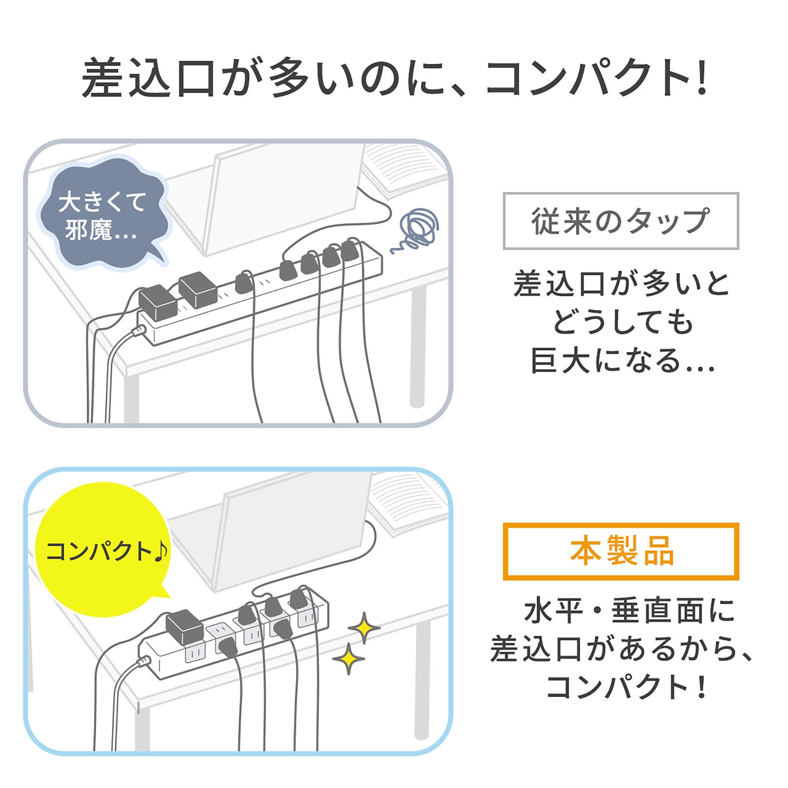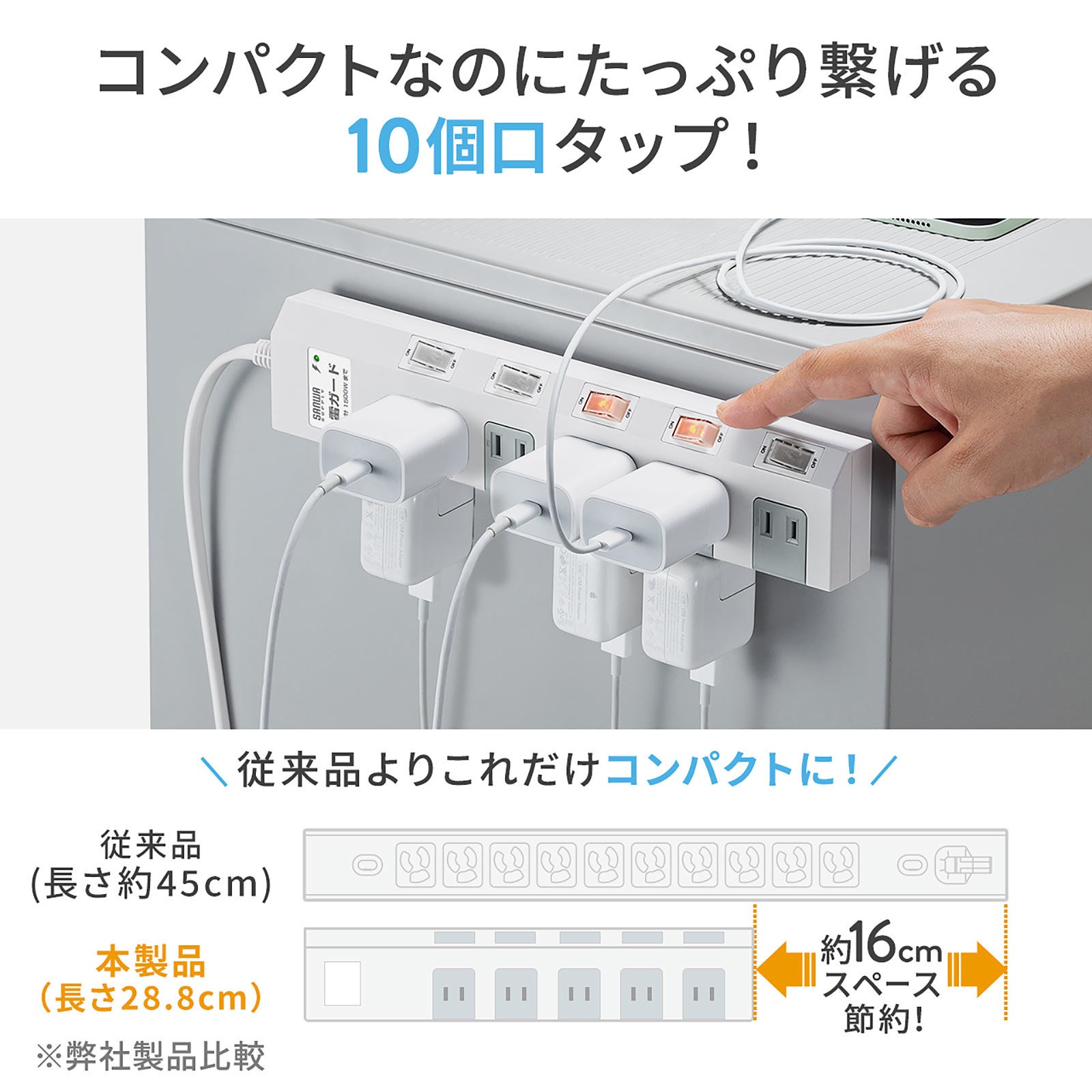 全長が短くコンパクトな10個口電源タップを1月21日発売