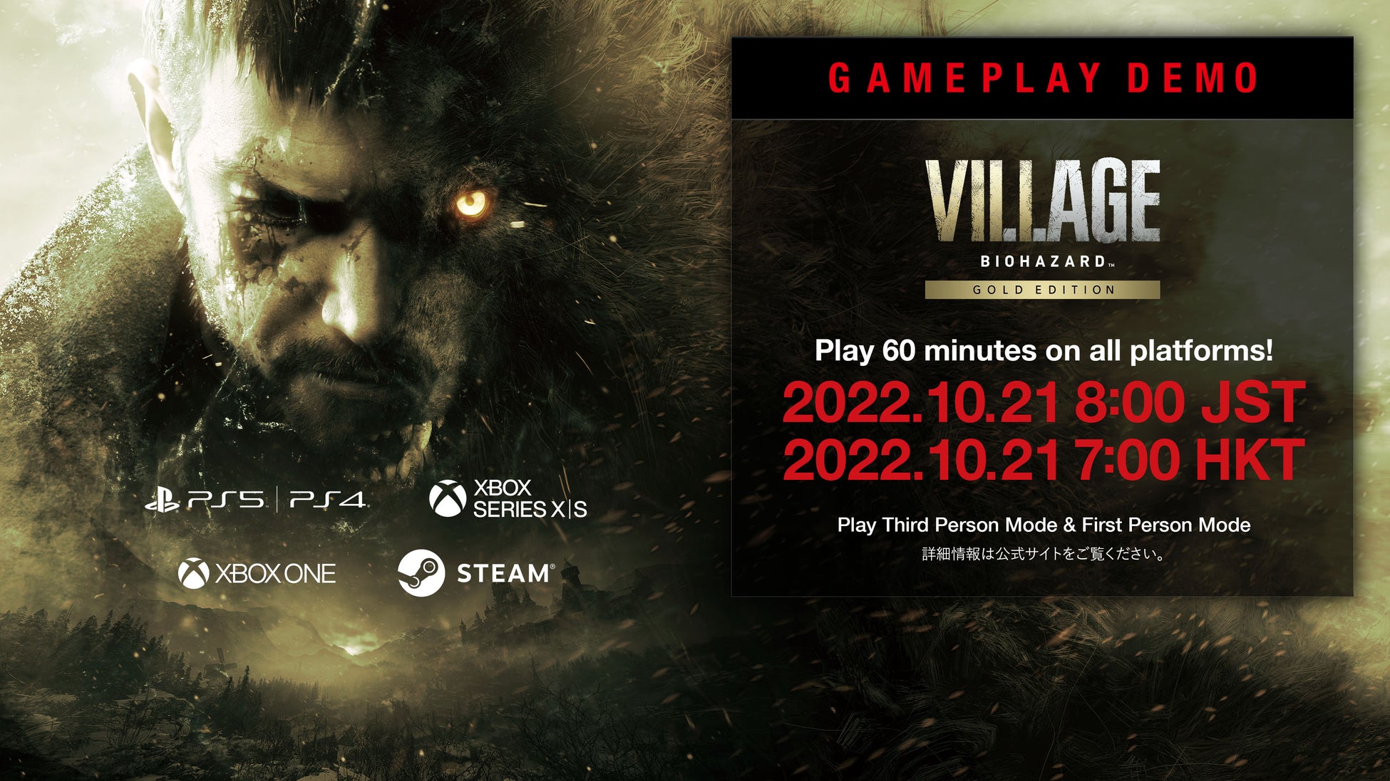 (『バイオハザード ヴィレッジ』本編とDLC『ウィンターズ エクスパンション』、『トラウマパック』を収録。無償特典として『バイオハザード RE:バース』を付与)