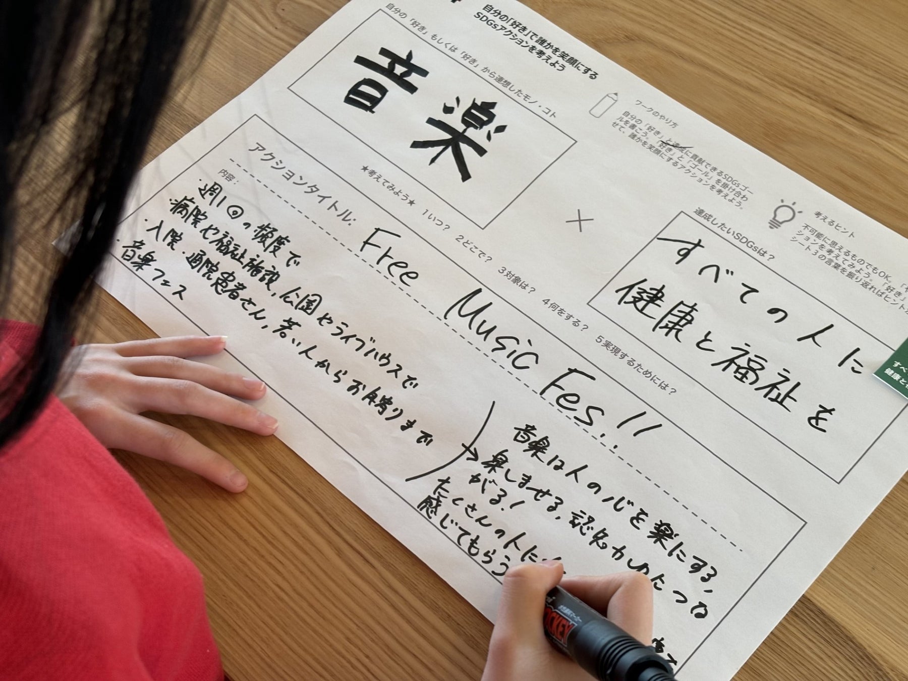 自分の「好き」を深掘りし、分解マップを作成してSDGsとのつながりを見つけましょう。その後には、「好き」と「社会や誰かの困りごと」をつないで、課題解決するアクションプランを考えます。グループワークでは、各自アクションプランを共有し学びを深めます!