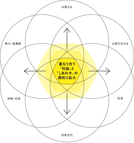 丸井グループは「すべての人が『しあわせ』を感じられるインクルーシブな社会を共に創る」ことをミッションとしています。このように大きなミッションを当会社の力だけで実現することは叶いません。そこで、私たちは将来世代を含むステークホルダーとの「共創経営」を実践することで、すべての人の「利益」と「しあわせ」の調和を実現し、ビジネスを通じて社会課題の解決と利益の両立をめざしています。