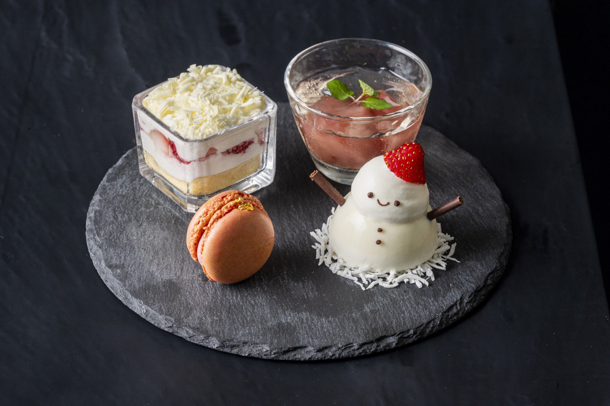 クリスマスといえば「雪」。子供の頃に雪だるま作りをされた方も多いのではないでしょうか。そんな過去に思いをはせながら今にも溶けてしまいそうなスノーマンのココナッツムースをぜひ、お楽しみください。