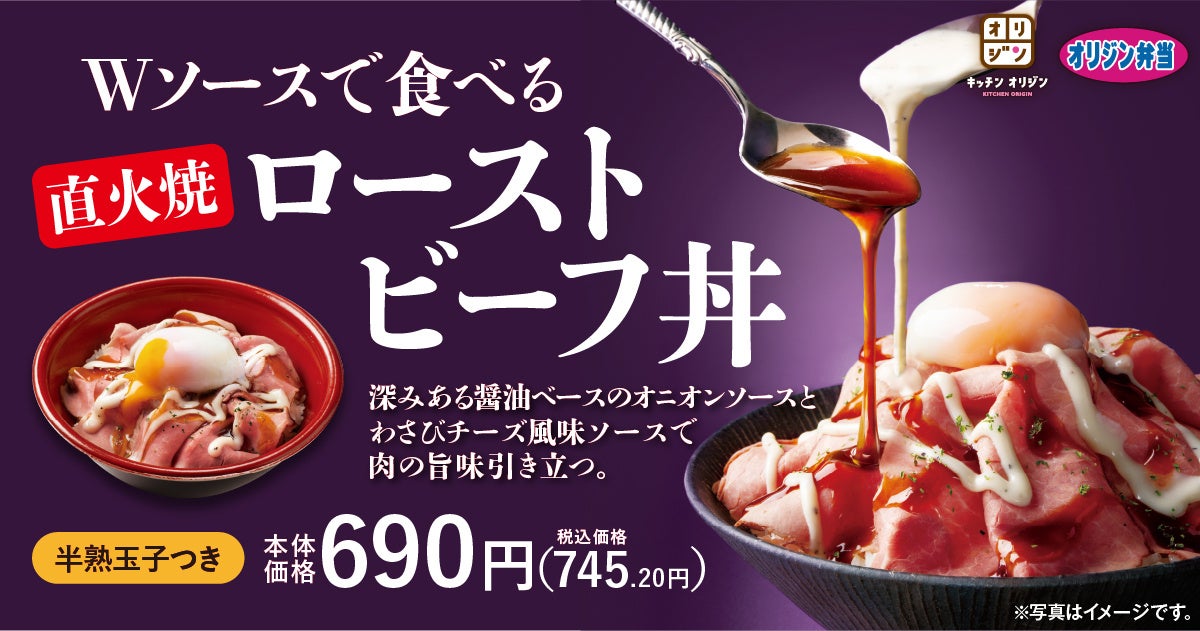 弁当・惣菜専門店「キッチンオリジン」「オリジン弁当」を展開しているイオングループのオリジン東秀株式会社(本社:東京都調布市/代表:沢村 弘也)は、9月12日(月)10時より、「Wソースで食べる直火焼ローストビーフ丼」を期間限定で販売いたします。