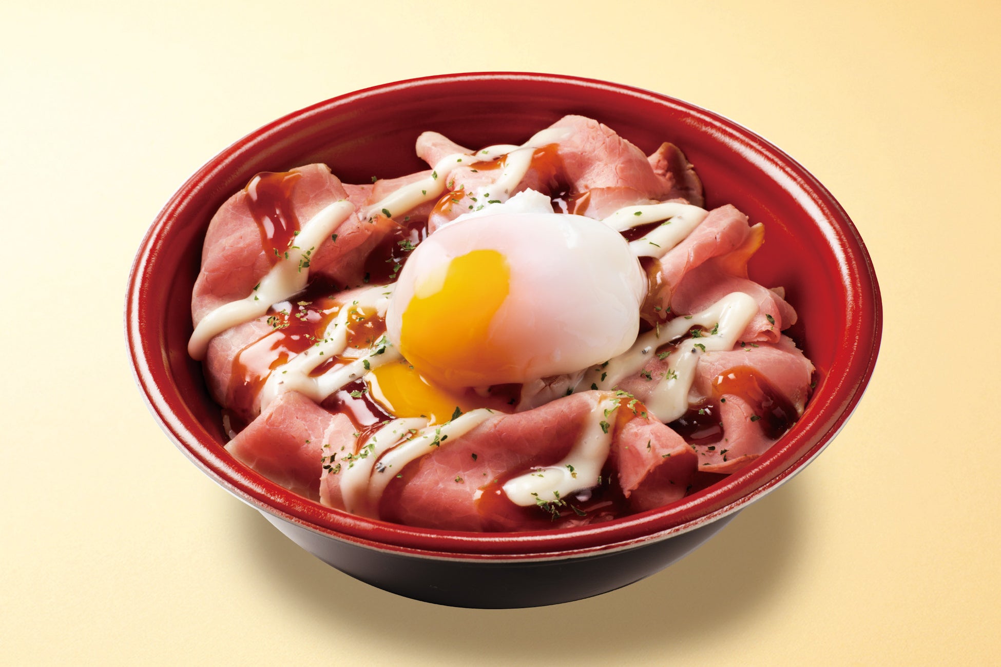 【王道半熟玉子のせっ】「Wソースで食べる直火焼ローストビーフ丼」が期間限定で登場!