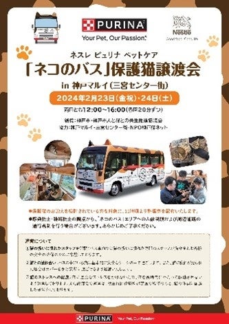 2月23日(金・祝)・24日(土)の2日間、ネスレ日本株式会社ネスレ ピュリナ ペットケアによる、「ネコのバス」保護猫譲渡会を同時開催いたします。