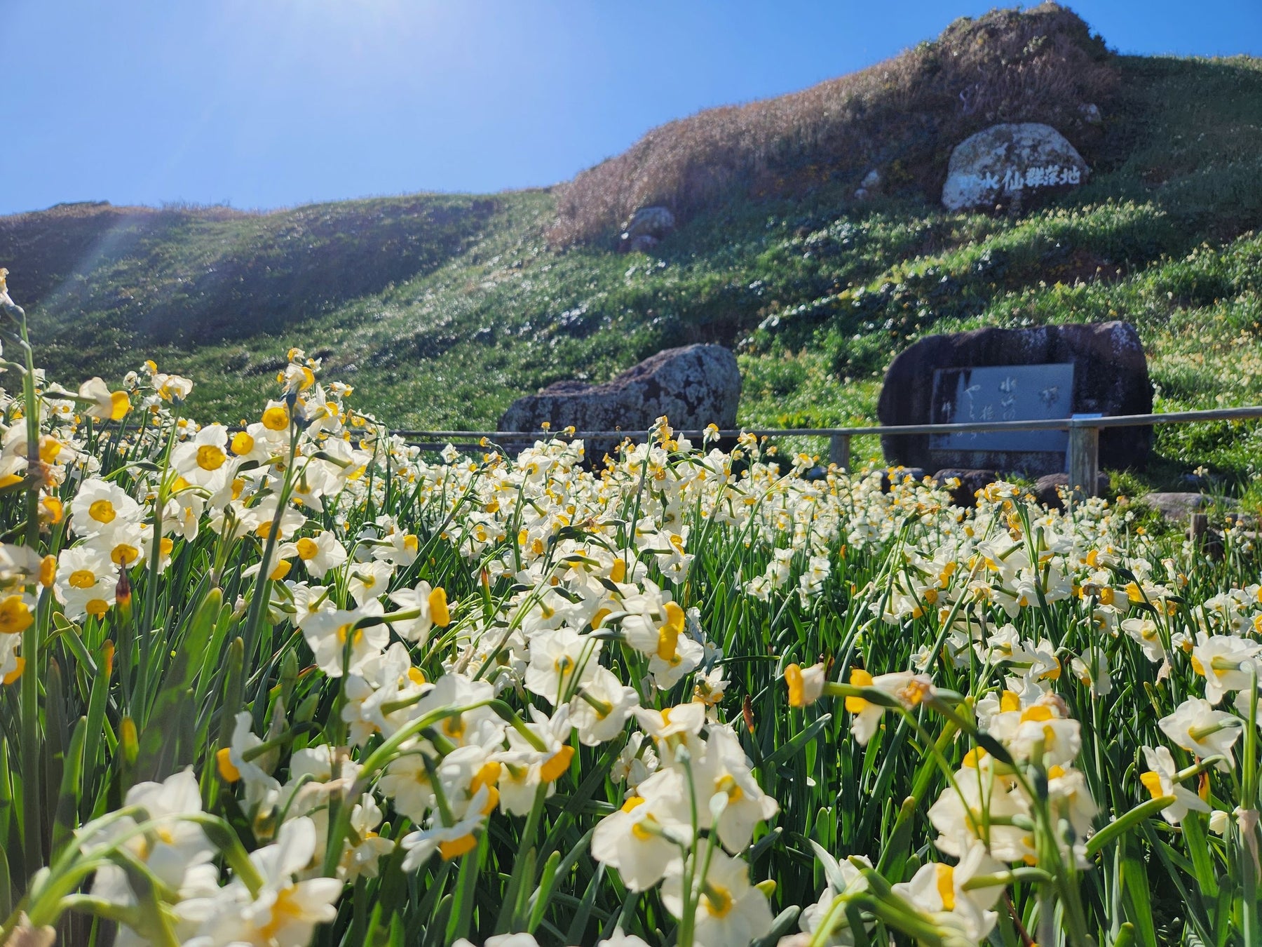 爪木崎では毎冬、300万本もの野水仙が甘い香りを漂わせながら咲き誇り、白い花々と碧い海が織り成す“冬の絶景”を楽しむことができます。会場では、ジオガイドによる自然散策ツアーや地元名物「いけんだ煮味噌(漁師鍋)」の振る舞い、スタンプラリーなど、訪れる人々を温かく迎える企画が多数開催され、毎年多くの観光客が訪れる伊豆の冬の風物詩となっています。