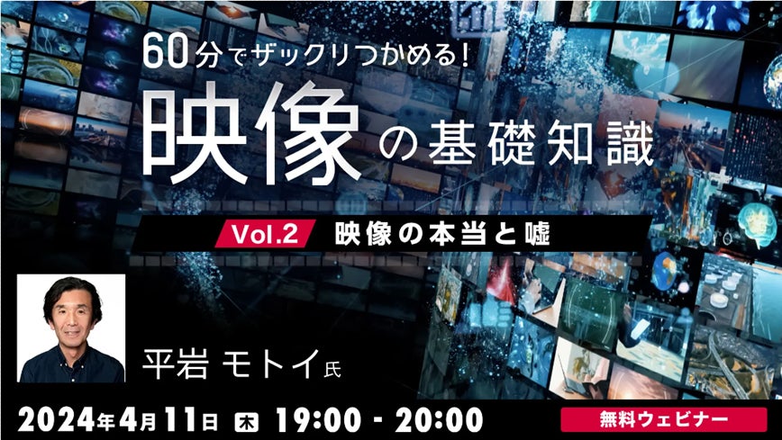 株式会社クリーク・アンド・リバー社(C&R社)は4月11日(木)、映像に関する基礎を学びたいクリエイターの方や映像分野をめざす学生の方を対象に、無料のオンラインセミナー「60分でザックリつかめる!映像の基礎知識 Vol.2 ~映像の本当と嘘~」を開催します。