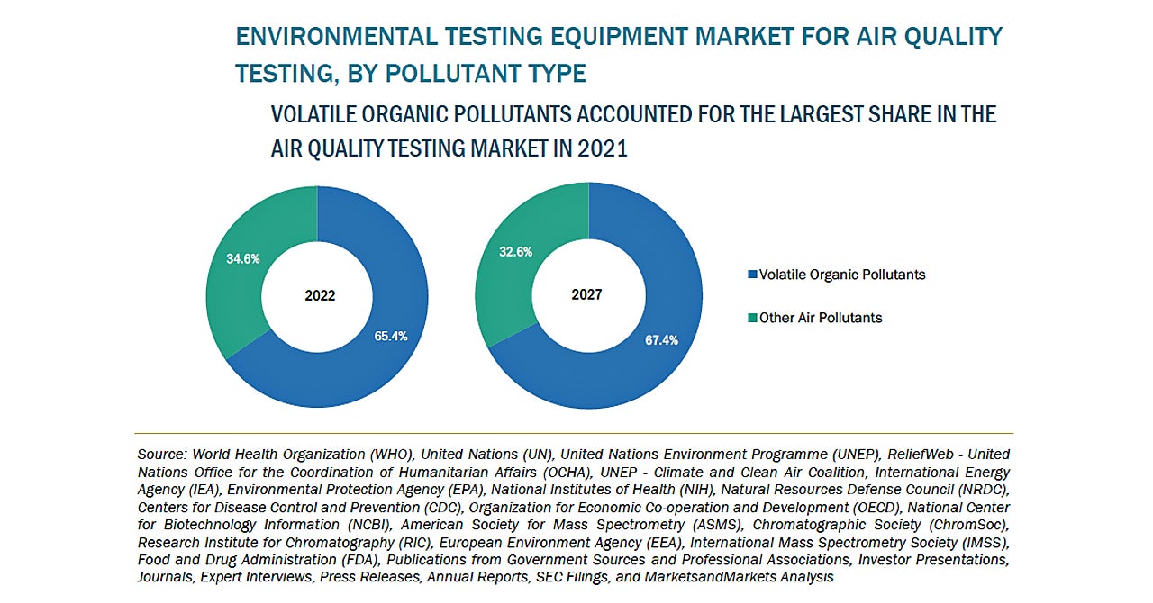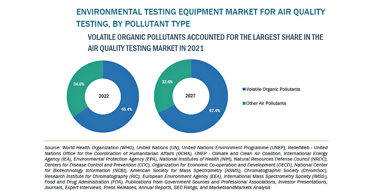 環境試験器の市場規模は、2022年の11億米ドルからCAGR7.6%で成長し、2027年には16億米ドルに達すると予測されています。環境試験器市場の成長は、環境汚染レベルの上昇、環境保護に関する意識を高めるための組織の取り組み、環境試験・処理サービスの民営化、廃水処理プロジェクトおよびプログラムに関する資金調達の増加によってもたらされています。また、COVID-19パンデミック以降の産業活動の増加や、モバイル・ポータブルシステムの利用拡大も、同市場のプレーヤーに幅広い成長機会を提供しています。一方、正確かつ高感度な分析試験のための高額な設備投資や、不十分なサポートインフラは、今後数年間で市場の成長をある程度制限する要因になると考えられます。